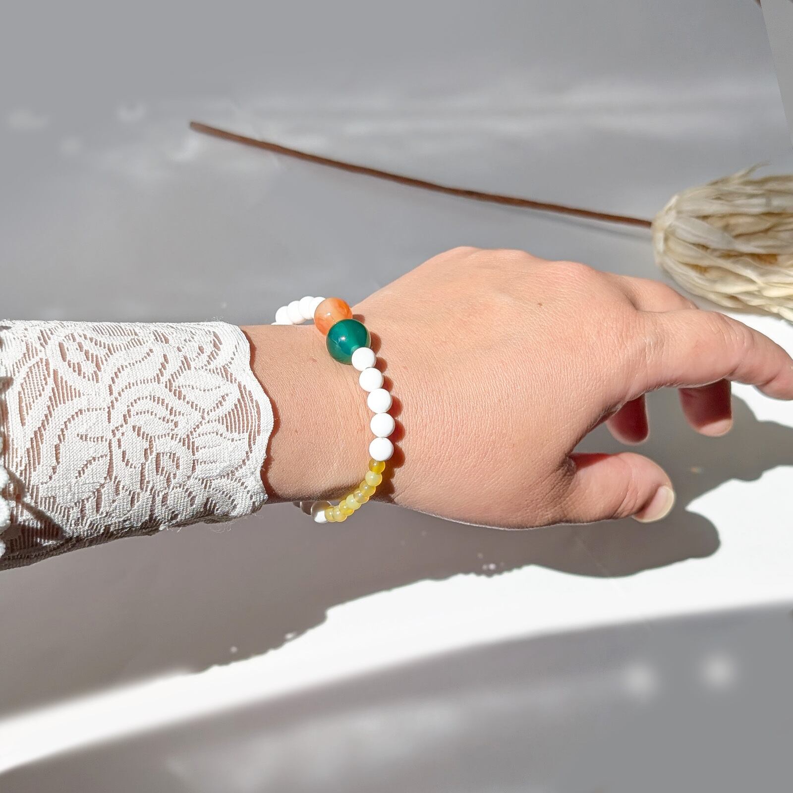 Vivo/一点もの グリーンアゲート×ボツワナオレンジカルセドニー×ホワイトオニキス アシンメトリー ヴィヴォブレスレット