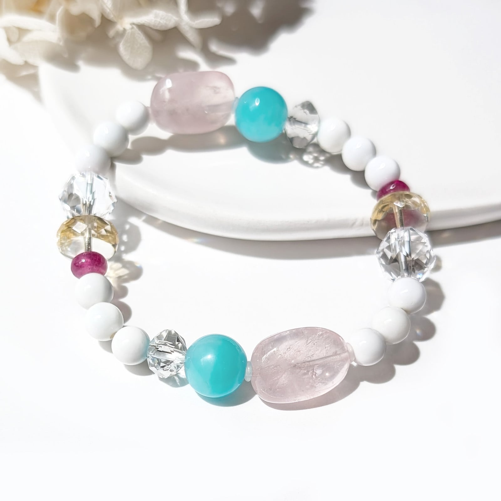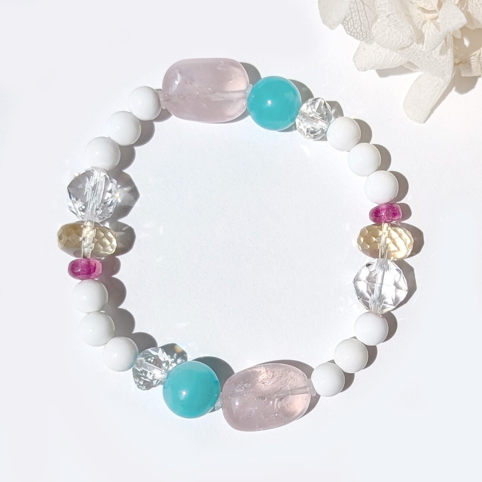 Flow/一点もの ローズクォーツ×アマゾナイト×ホワイトオニキス フロウブレスレット
