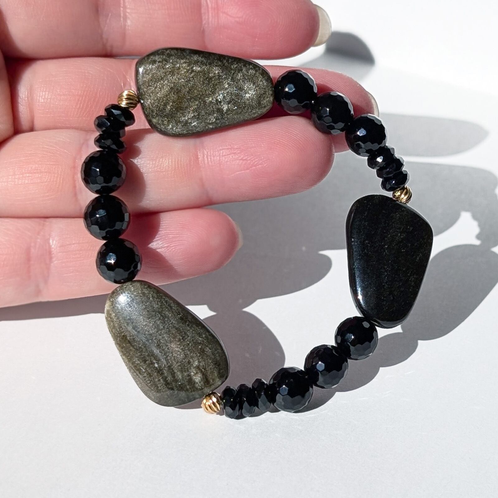 Golden shine Obsidian×Black Onyx/一点もの ゴールデンシャインオブシディアン×オニキス×14kgfビーズブレスレット