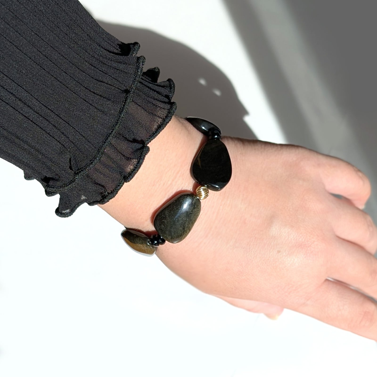 Golden shine Obsidian×Black Onyx/一点もの ゴールデンシャインオブシディアン×オニキス×14kgfビーズブレスレット