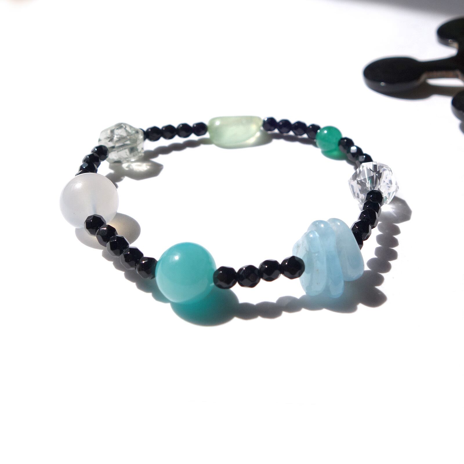 Planet/一点もの アマゾナイト×プレナイト×ミルキーアクアマリン プラネットブレスレット