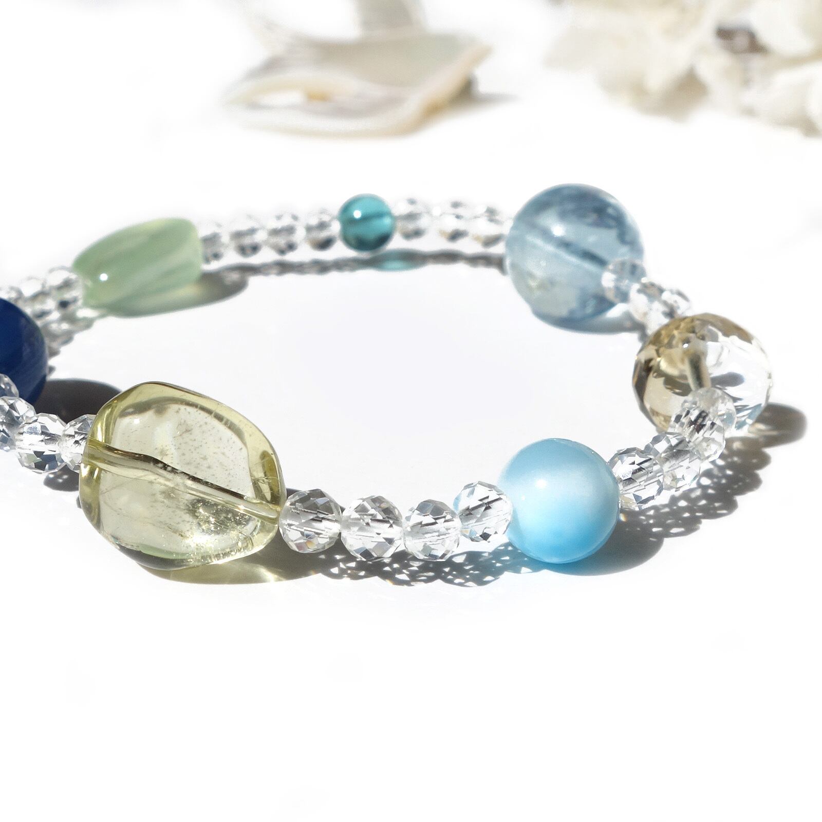 Planet/一点もの アクアマリン×アイスラリマー×プレナイト プラネットブレスレット