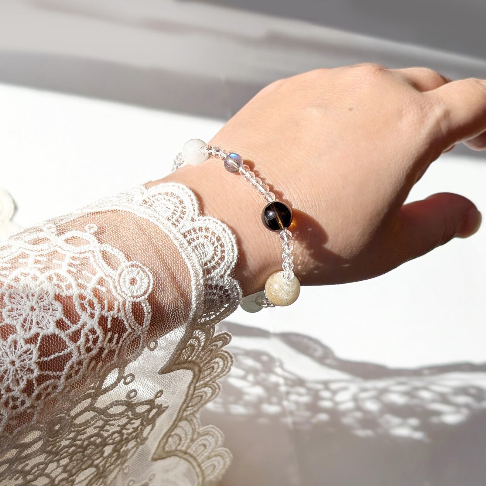 ・ブレスレットのサイズによってベースの粒の数が異なるため、全体の印象が少し変わって見えることがあります。