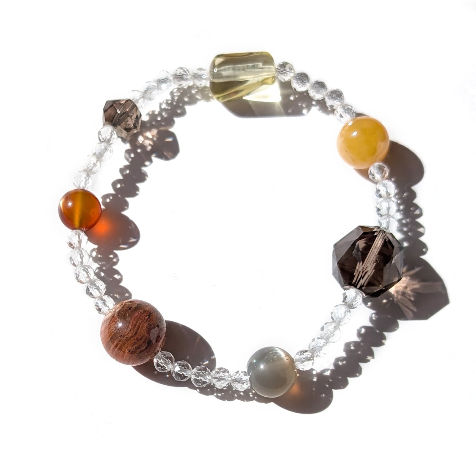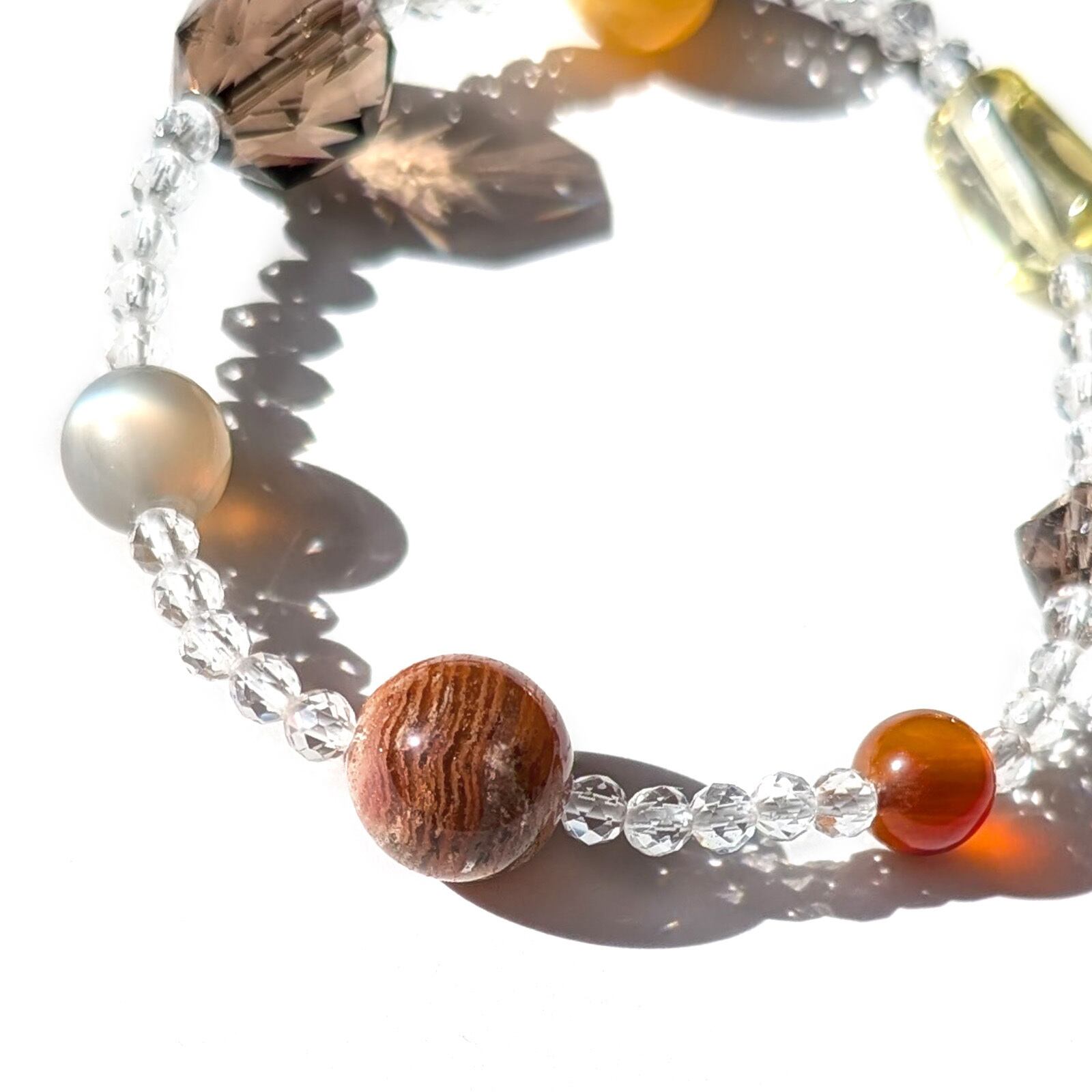 Planet/一点もの 千層レッドガーデンファントムクォーツ×スモーキークォーツ×ムーンストーン プラネットブレスレット