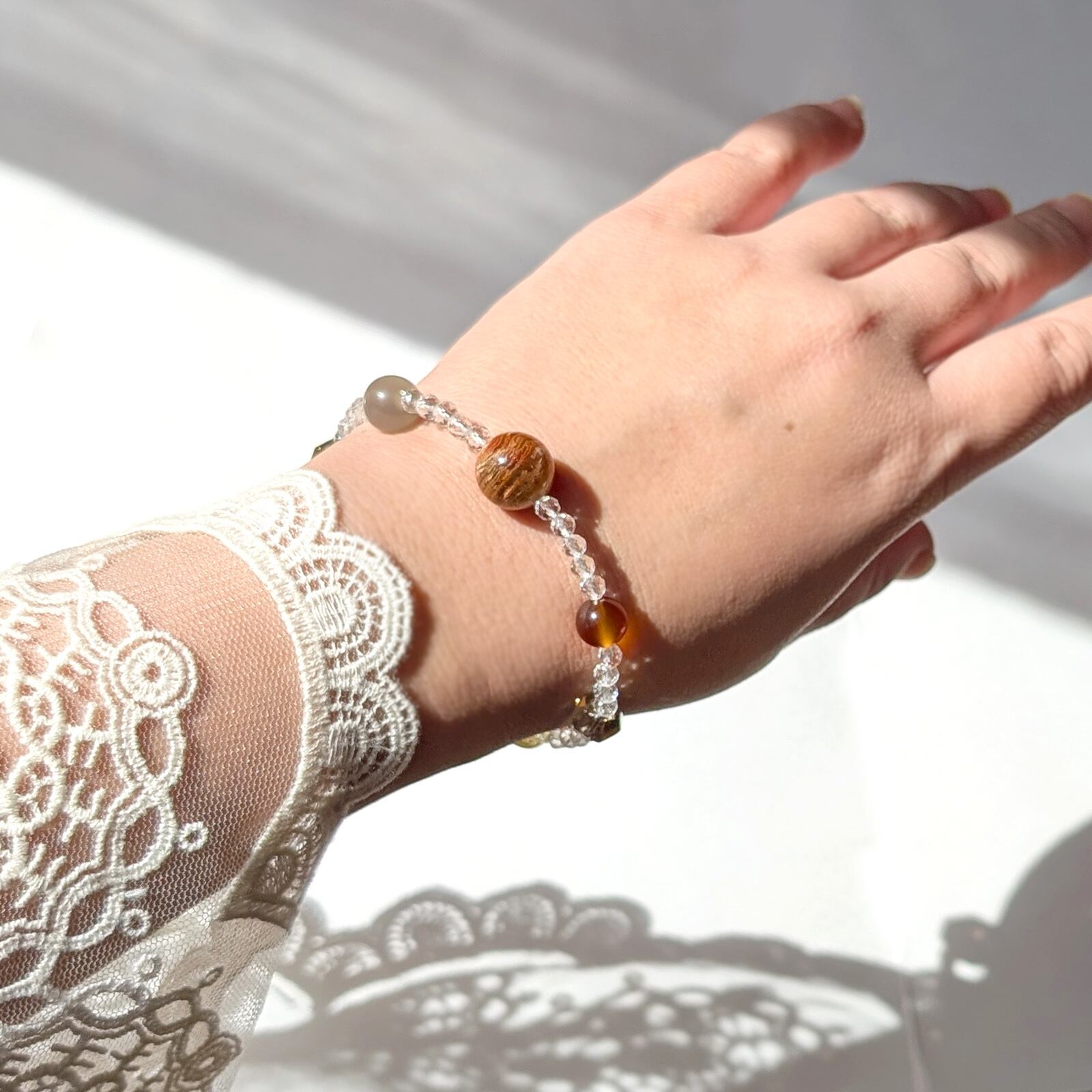 ・ブレスレットのサイズによってベースの粒の数が異なるため、全体の印象が少し変わって見えることがあります。