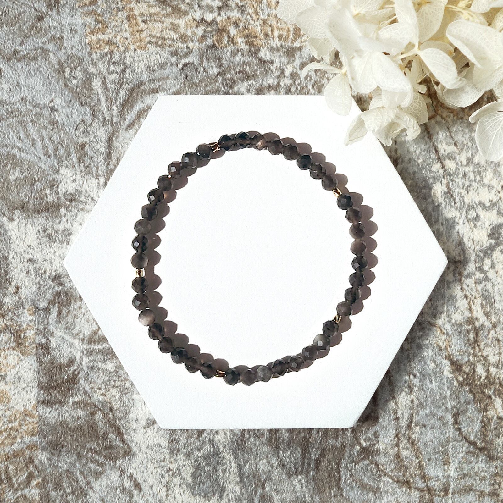 Silver shine Obsidian/暗闇に浮かぶ月 シルバーシャインオブシディアン(カット玉)極小粒ブレスレット