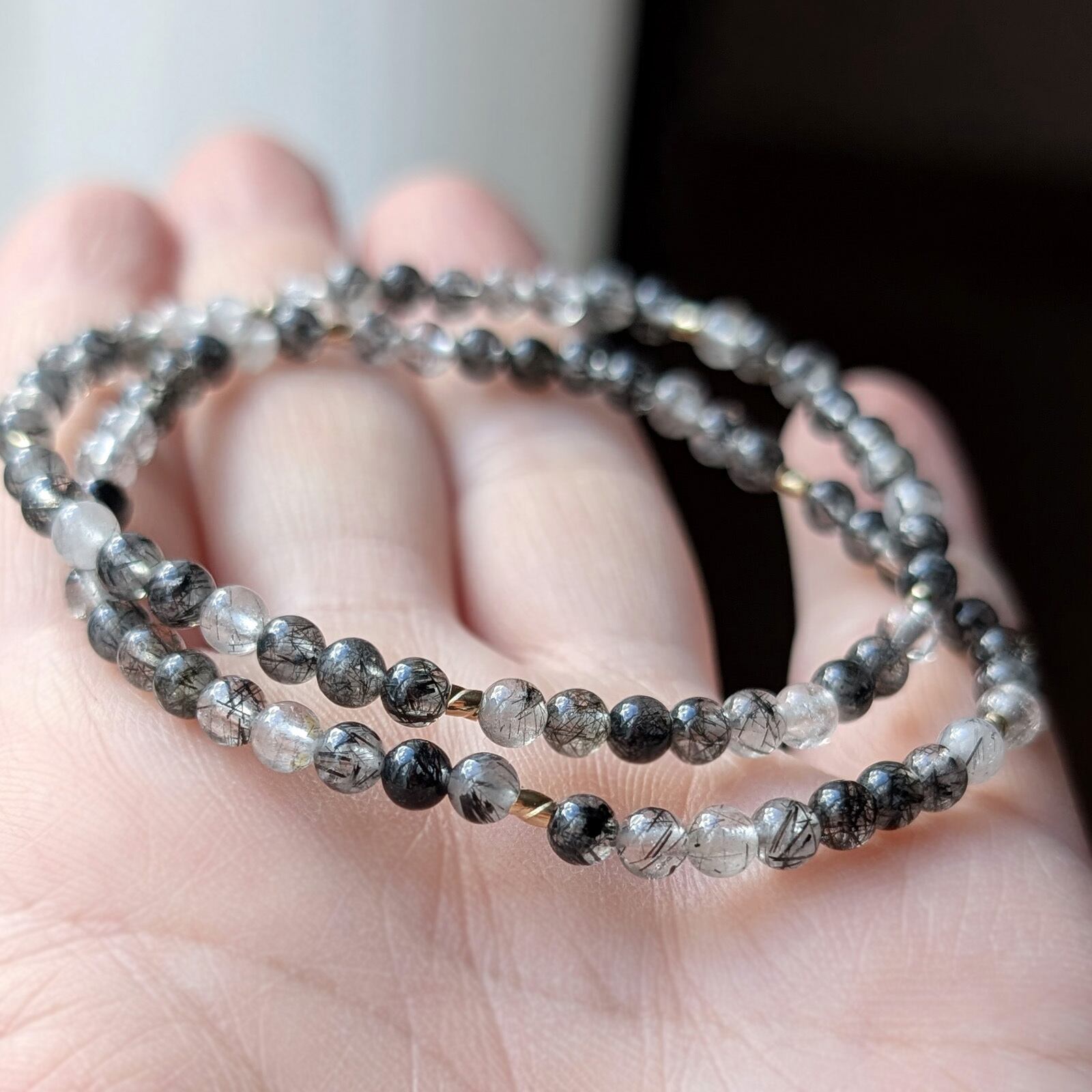 Blacktourmaline in Quartz/スタイリッシュなモノトーン ブラックトルマリンインクォーツ極小粒ブレスレット