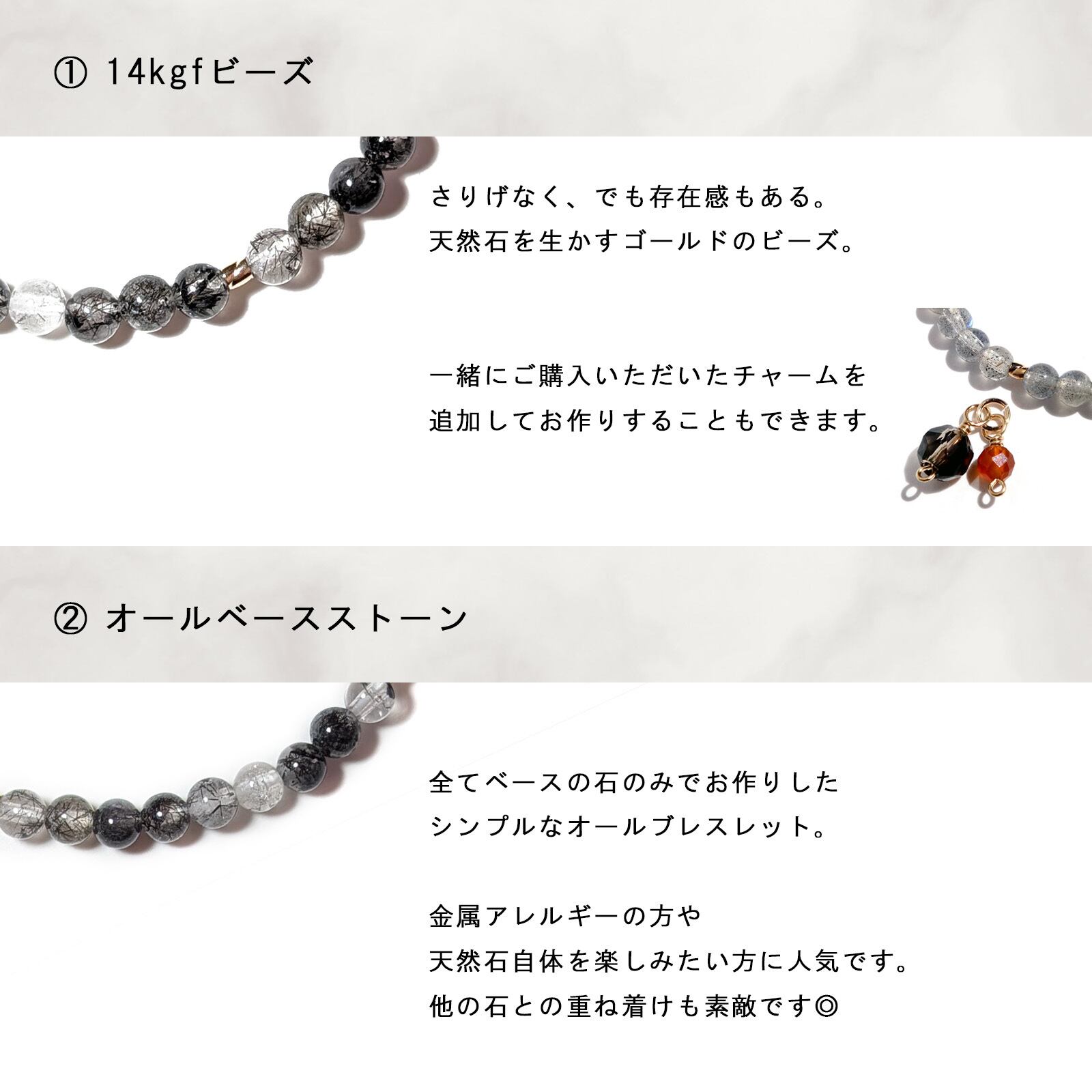 14kgfビーズを、極小粒ブレスレットと同じ約4mmサイズの石へ変更し、天然石のみでお作りできます。