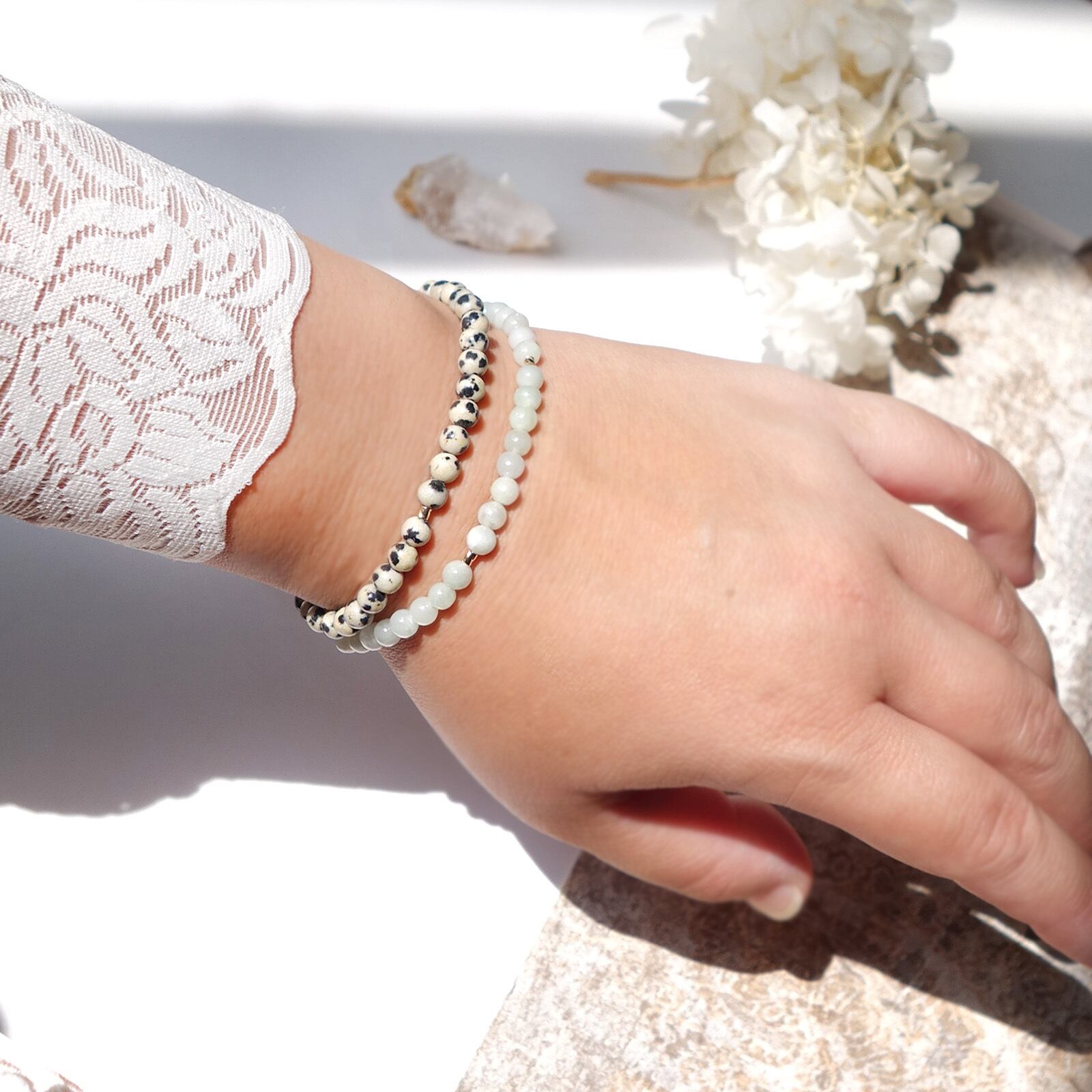 Dalmatian Jasper/キュートなぶち模様 ダルメシアンジャスパー極小粒ブレスレット
