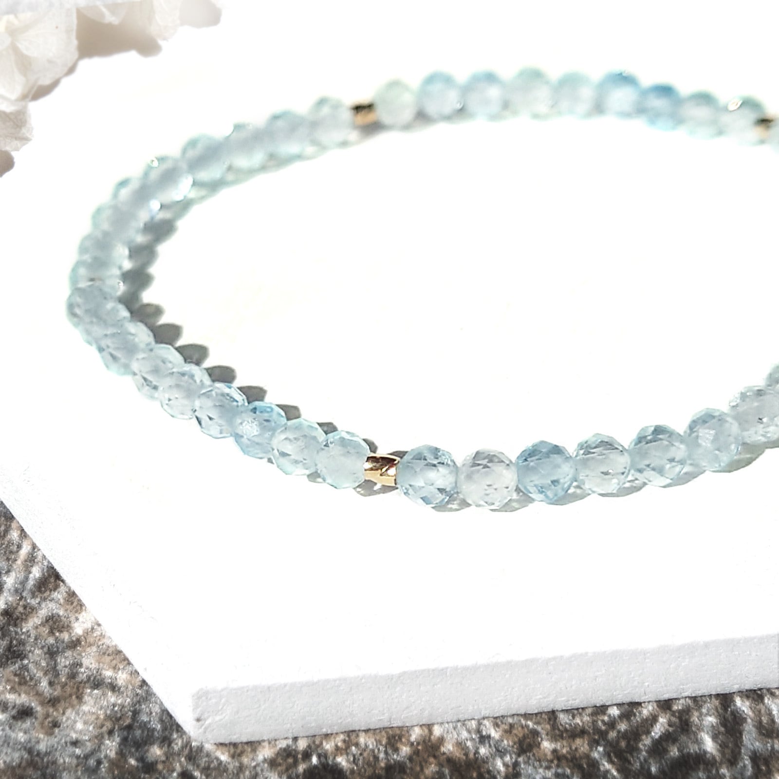 Aquamarine/澄み切った水のようなきらめき アクアマリン(カット玉)極小粒ブレスレット