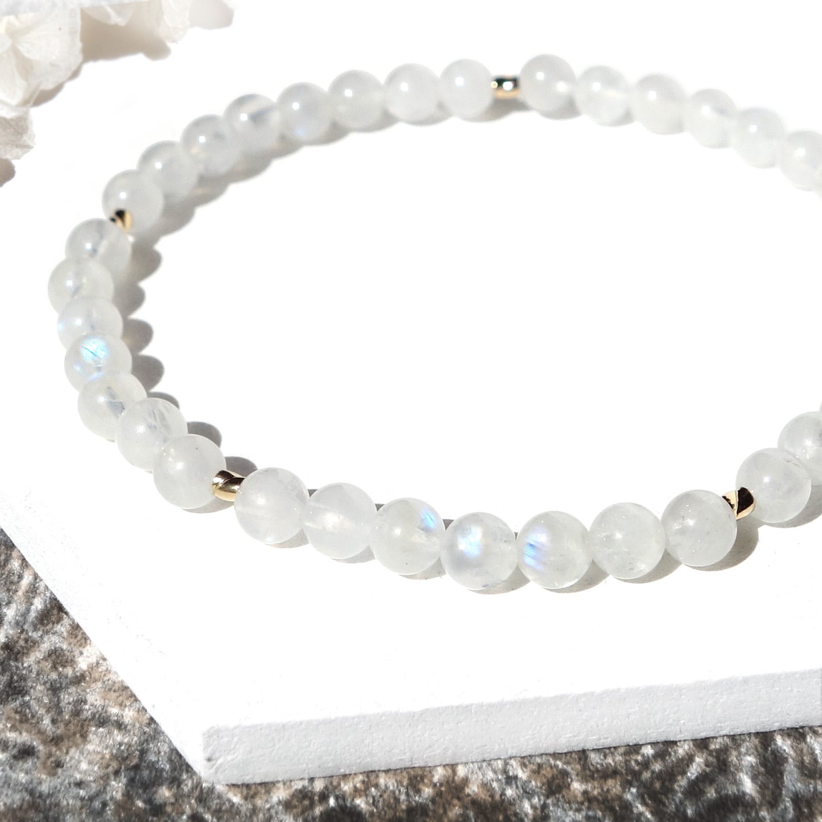 Rainbow Moon Stone/優しい虹の光 レインボームーンストーン(ホワイトラブラドライト)極小粒ブレスレット