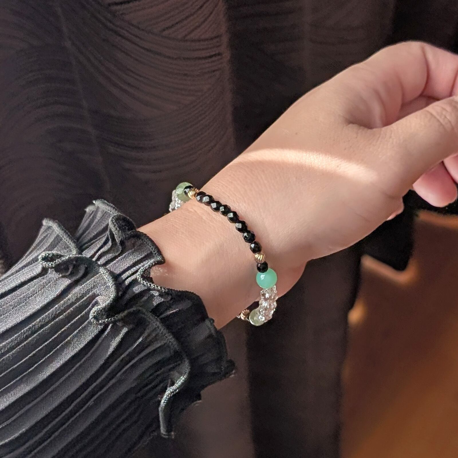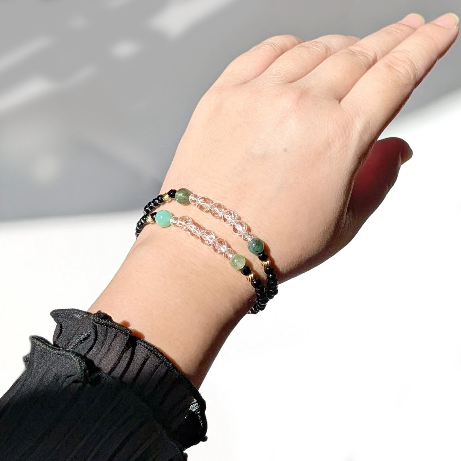 ・個々のサイズ差や入荷時期、ブレスレットのサイズによって入る粒の数が異なるため、多少デザインが変わる事があります。