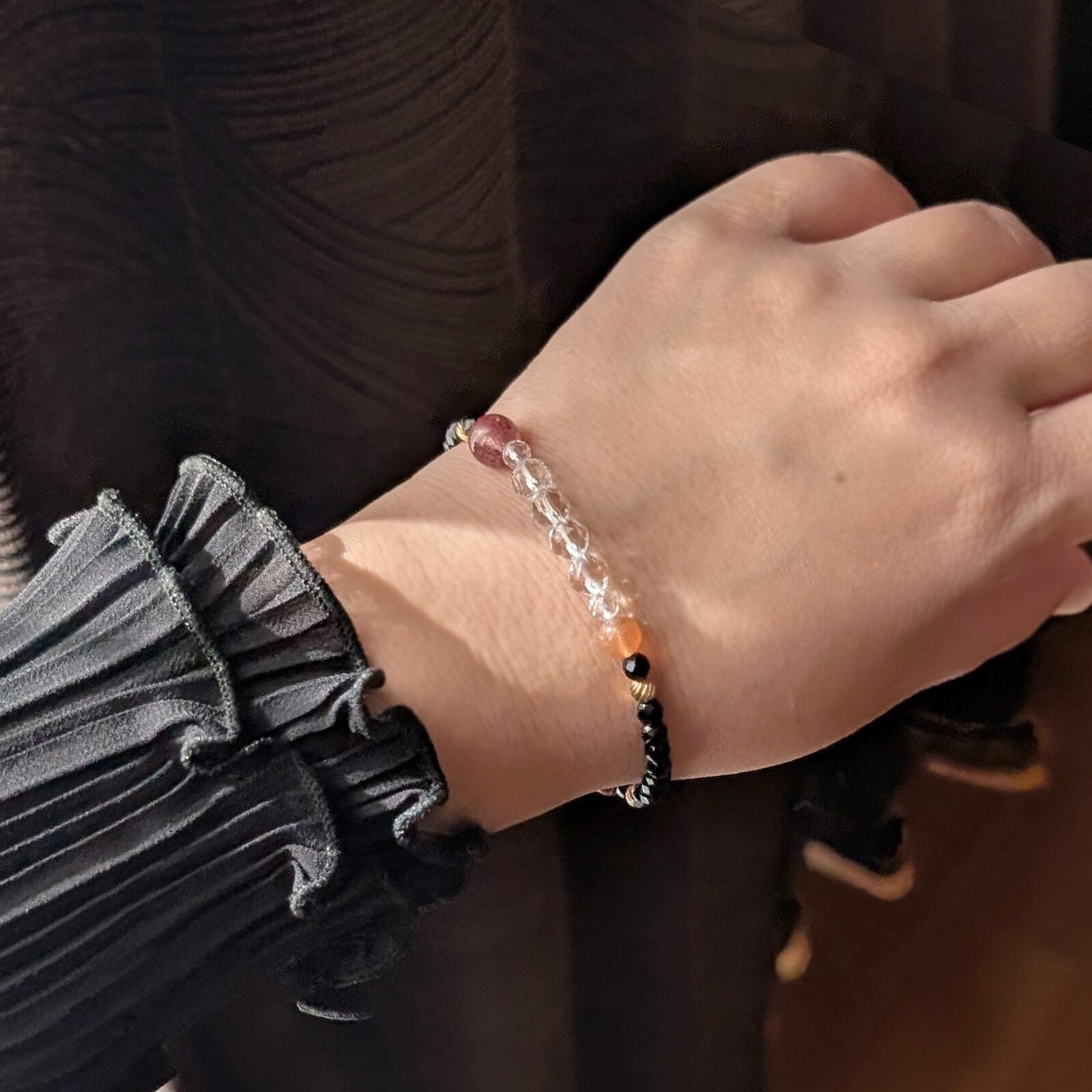 Quatre/レピドクロサイトインクォーツ×ヘソナイトガーネット×オレンジサンムーンストーン×ピンクエピドートシスト 炎 カトルブレスレット