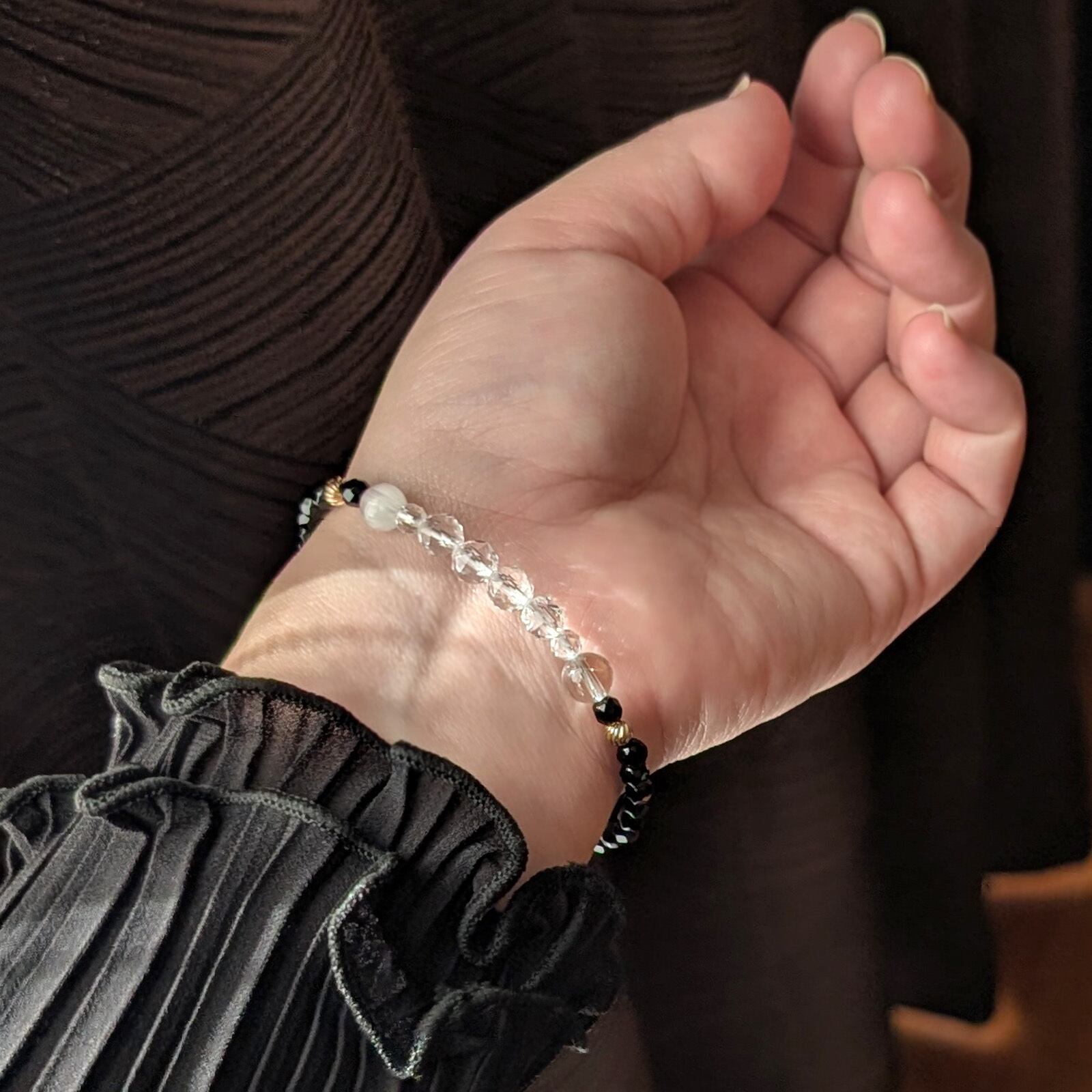 ・個々のサイズ差や入荷時期、ブレスレットのサイズによって入る粒の数が異なるため、多少デザインが変わる事があります。