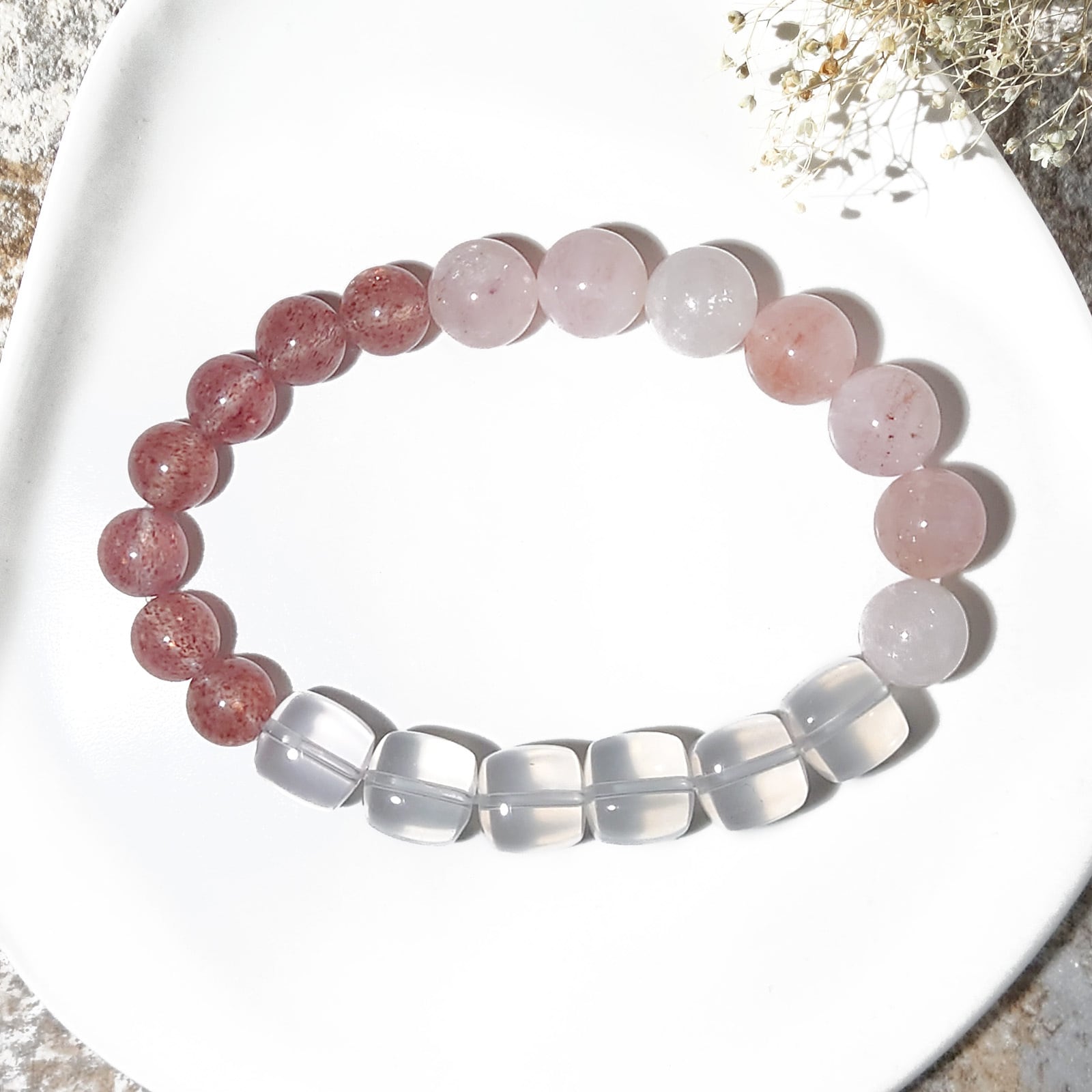ふんわり淡いピンクのローズクォーツ。