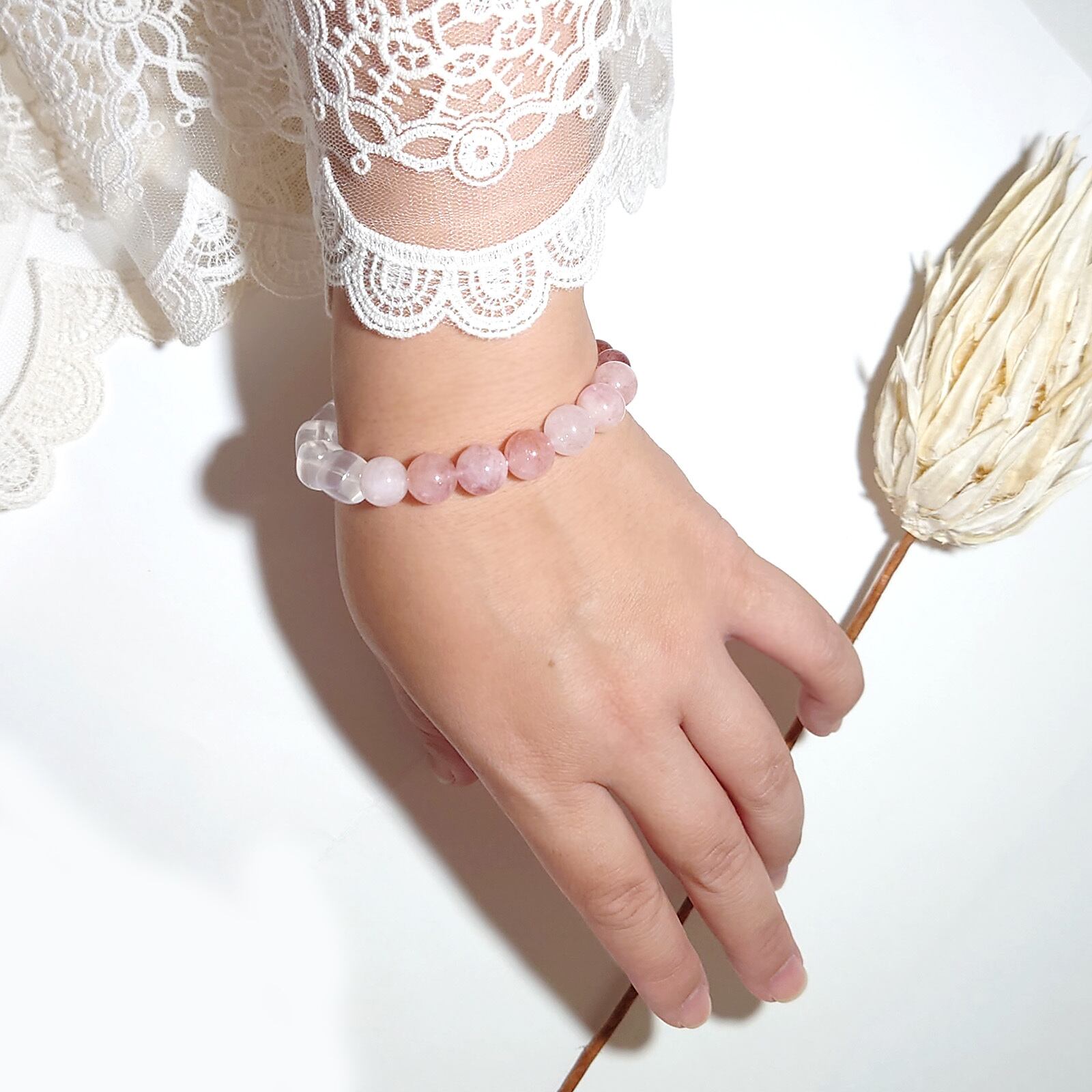Tri/ローズクォーツ×モルガナイト×マンガノエピドートシスト トリブレスレット