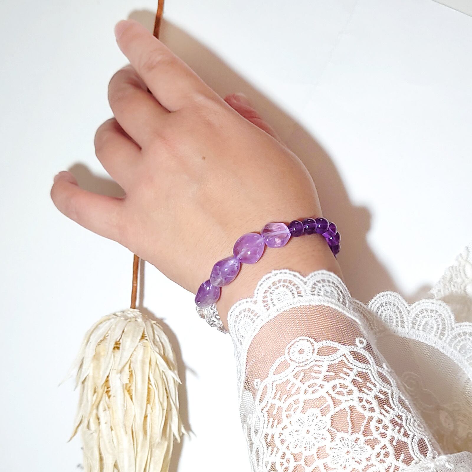 Tri/ミルキーアメジスト×水晶×アメジスト トリブレスレット