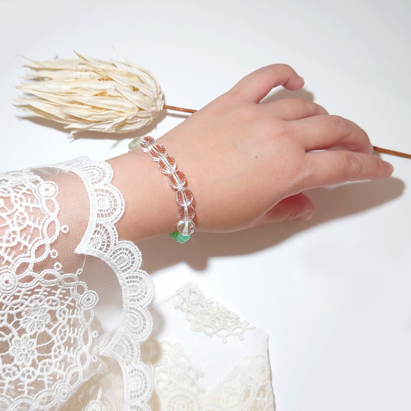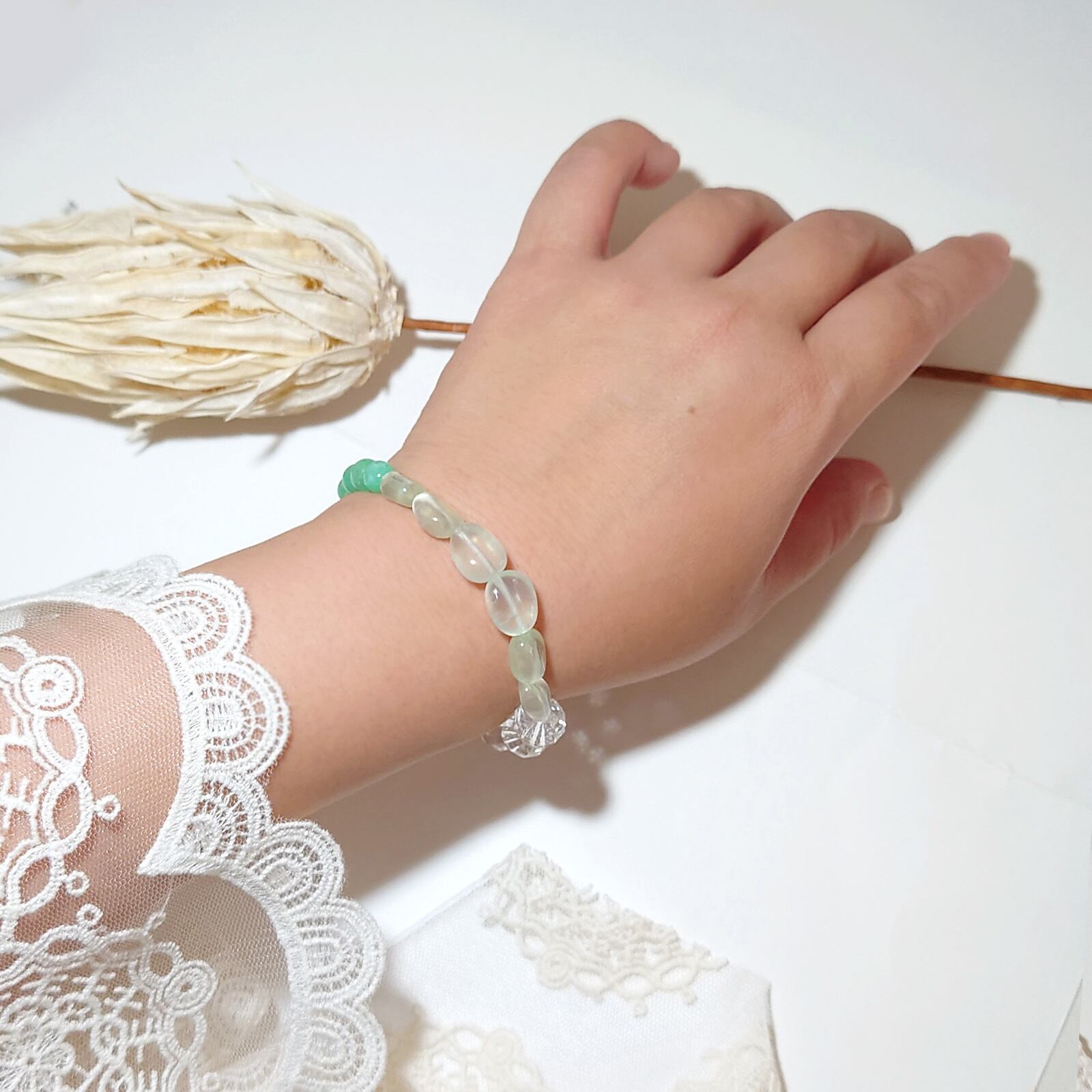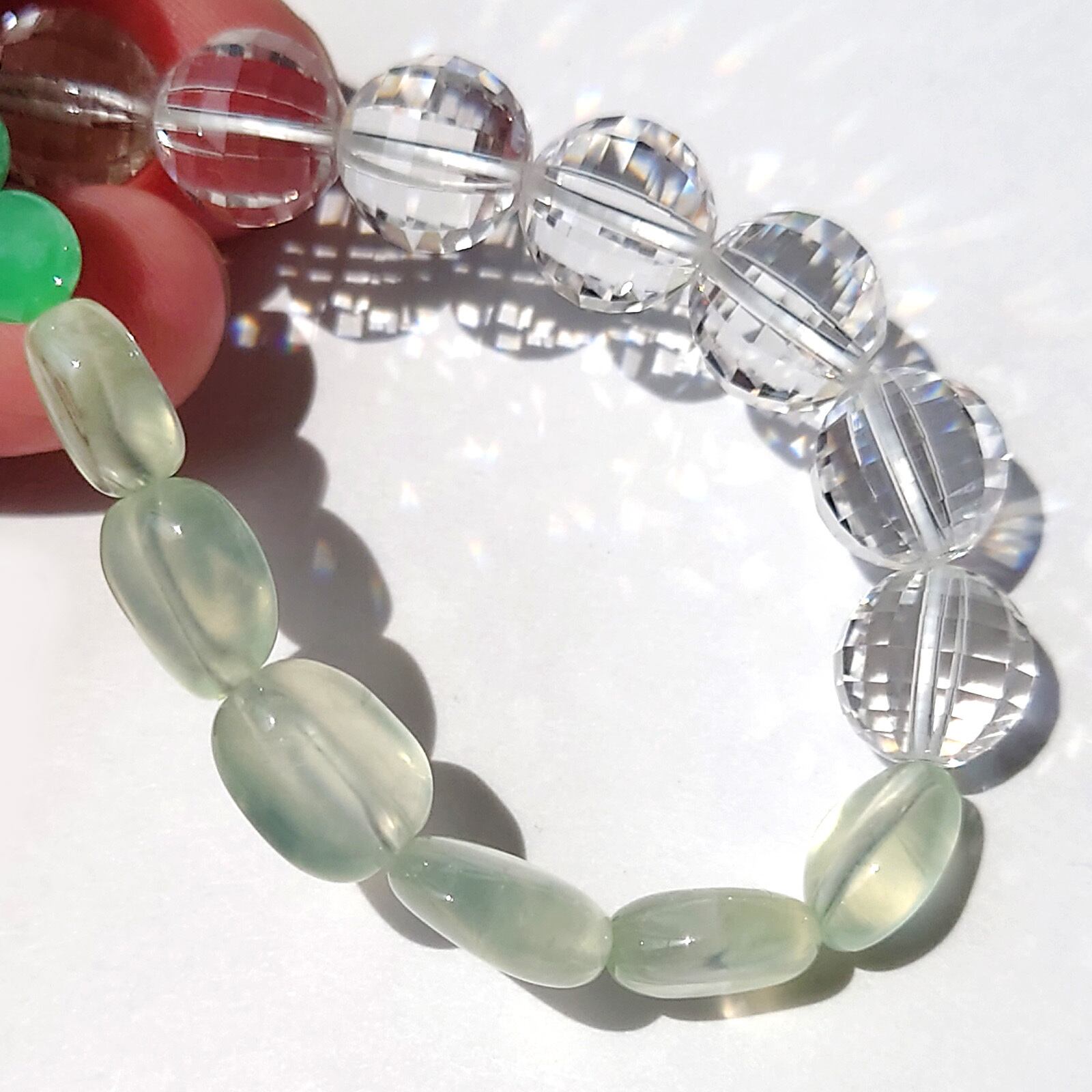 Tri/プレナイト×クリソプレーズ×水晶 トリブレスレット