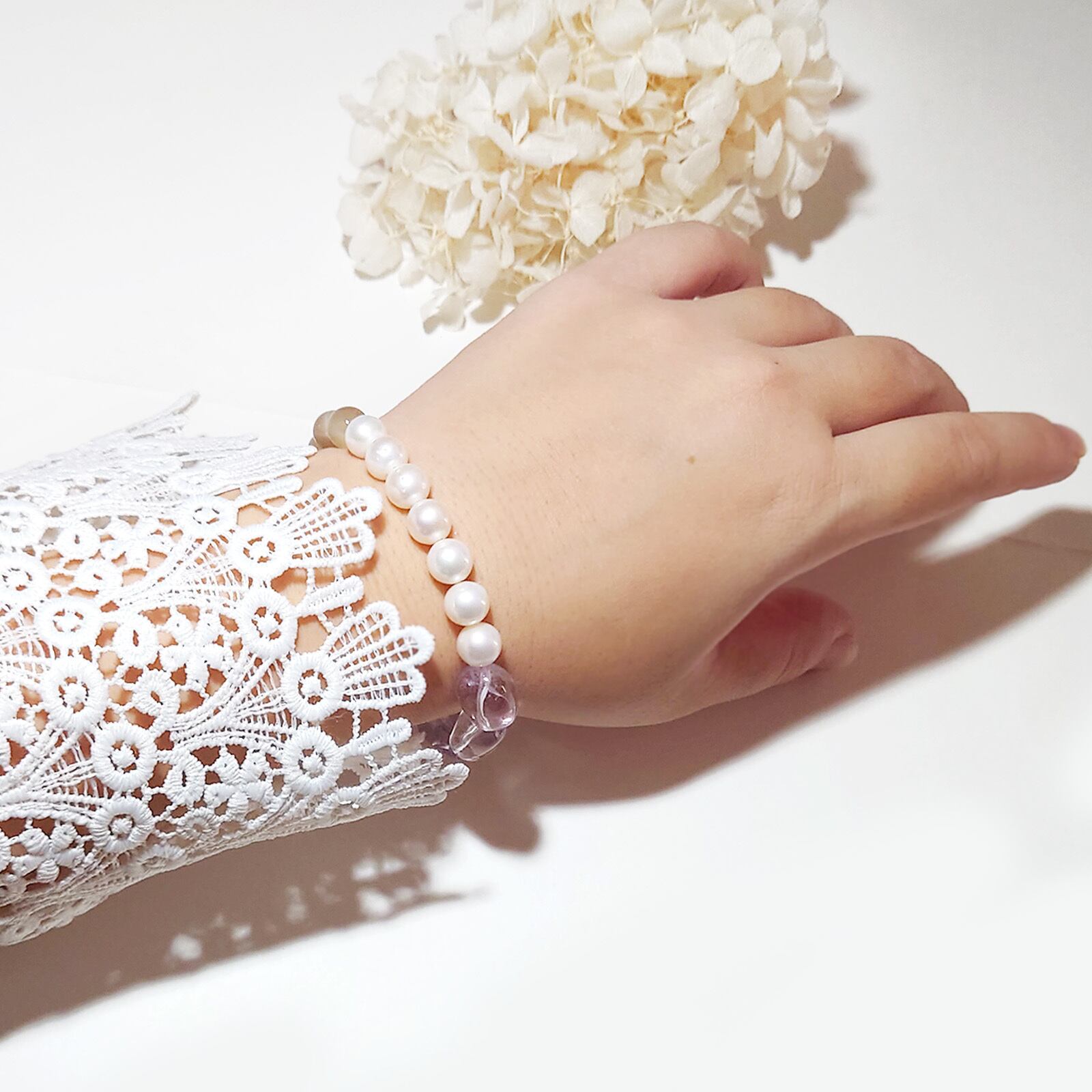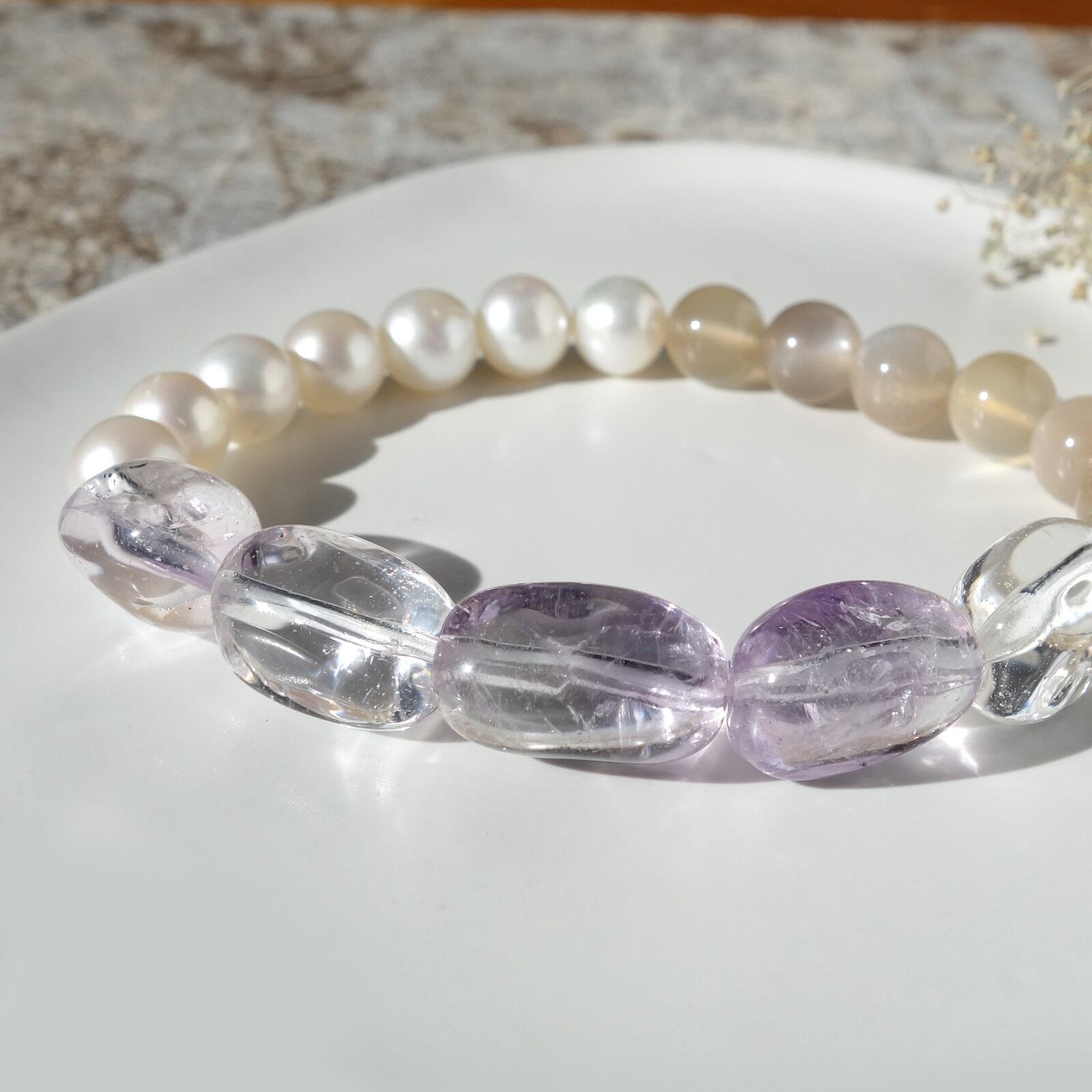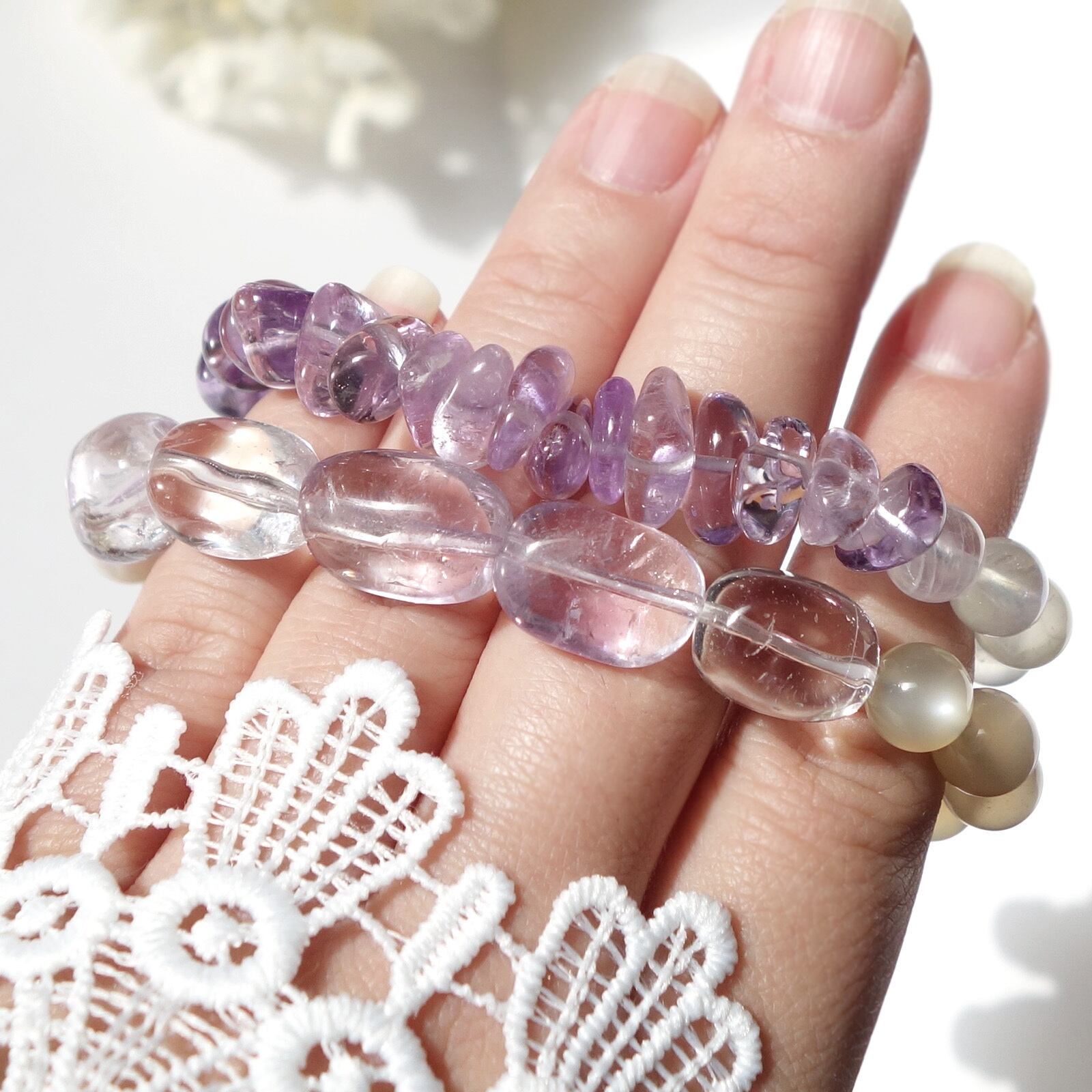 Tri/ライトカラーアメジスト×淡水ホワイトパール×ベージュムーンストーン トリブレスレット