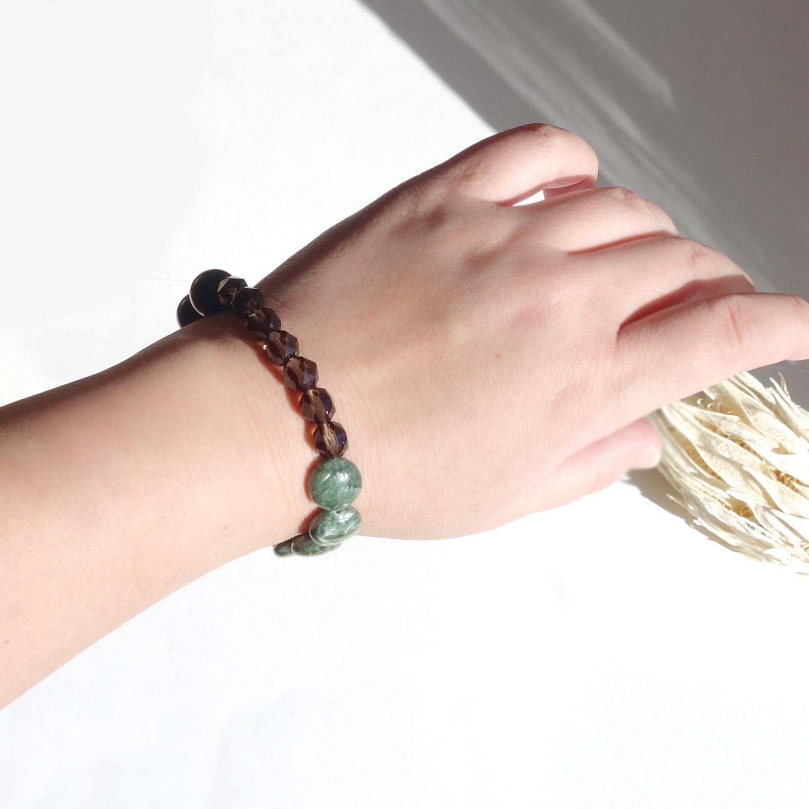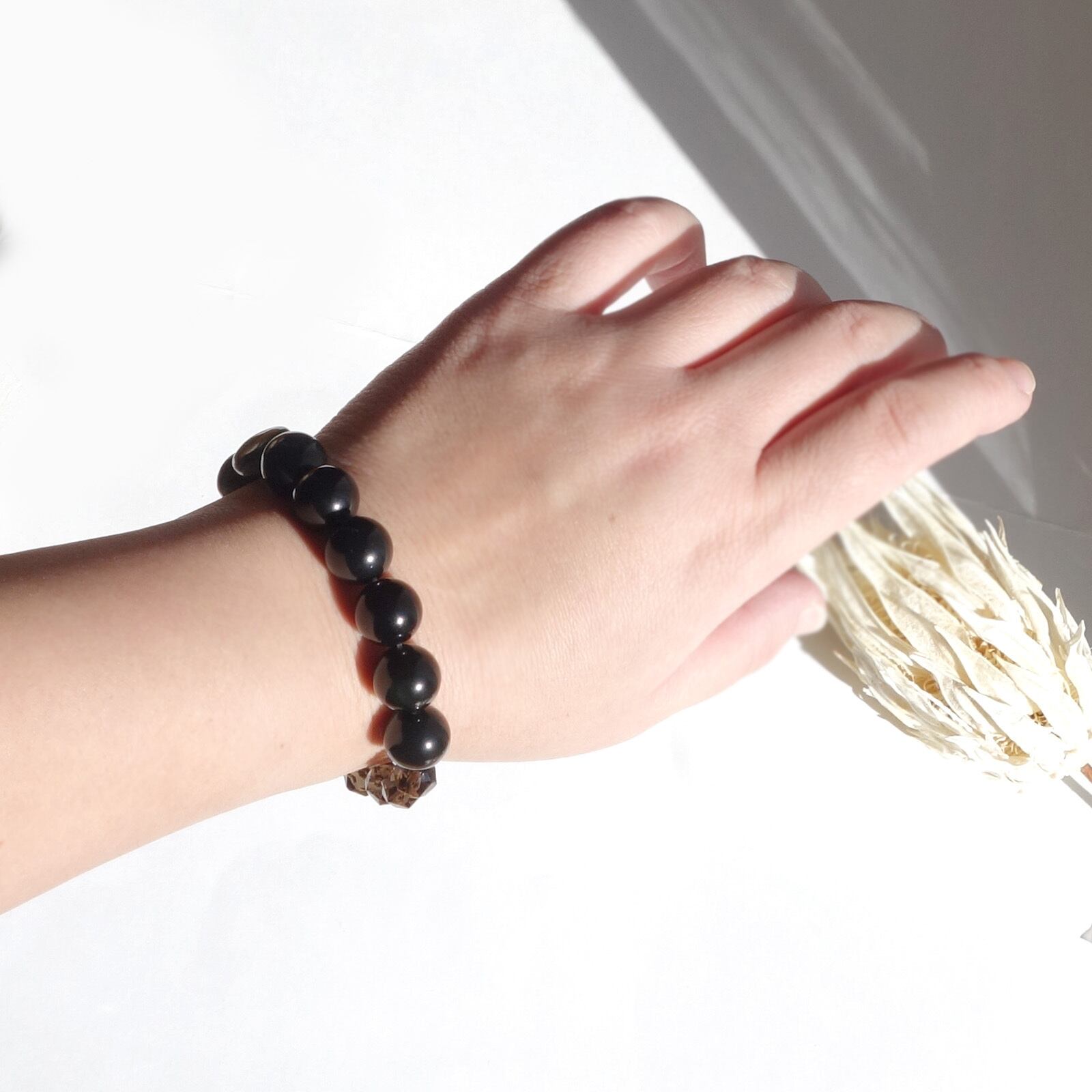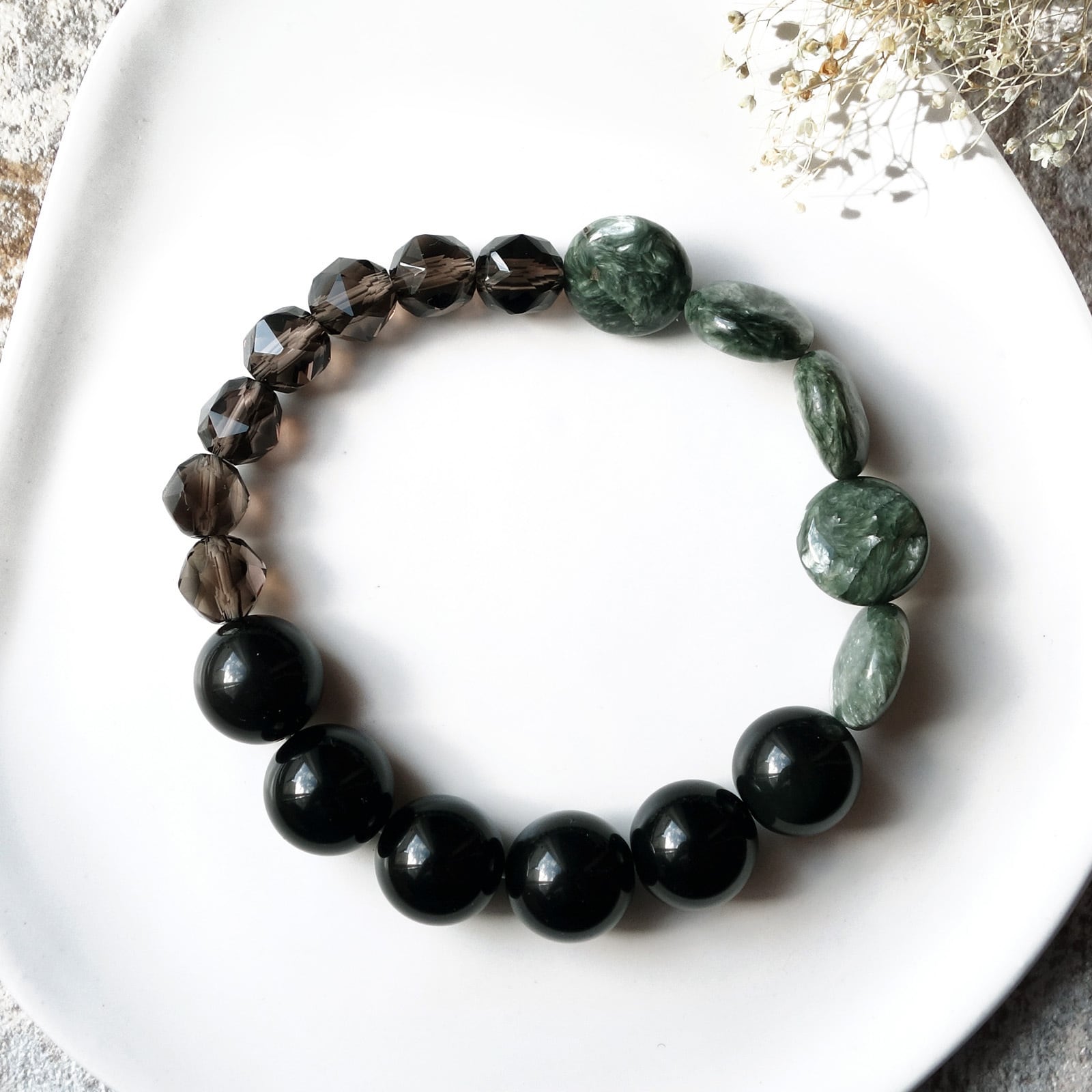 Tri/一点もの オブシディアン×セラフィナイト×スモーキークォーツ トリブレスレット