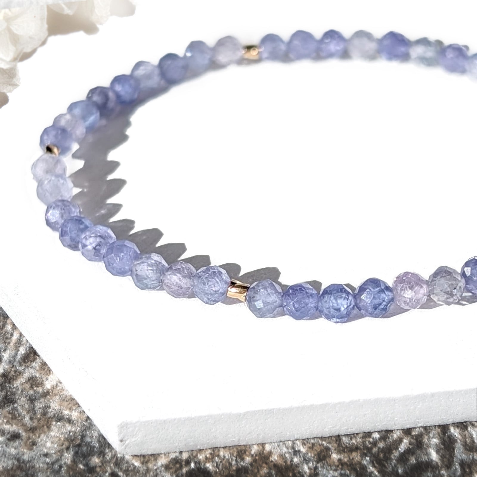 Tanzanite/【ハイクオリティ】雨の似合うアジサイ色 タンザナイト(カット玉)極小粒ブレスレット