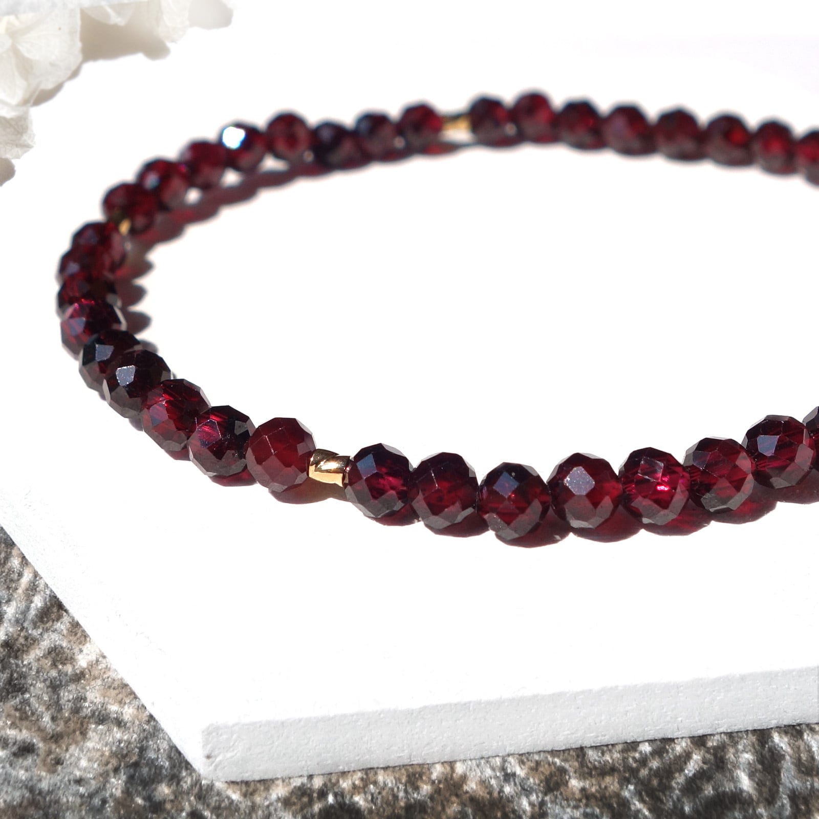 Garnet/濃い赤バラ色 モザンビーク産ガーネット(カット玉)極小粒ブレスレット