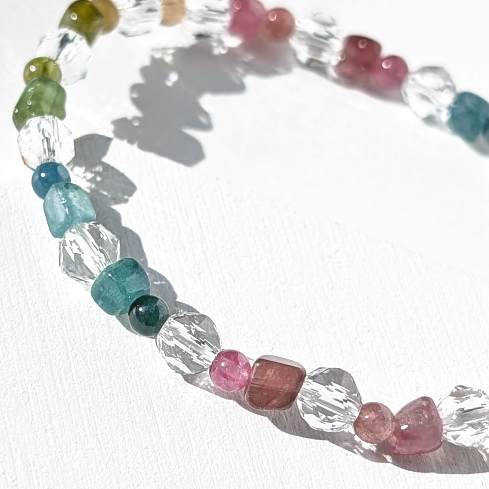 Rainbow/一点もの 虹色 レインボーグラデーショントルマリン×水晶ブレスレット