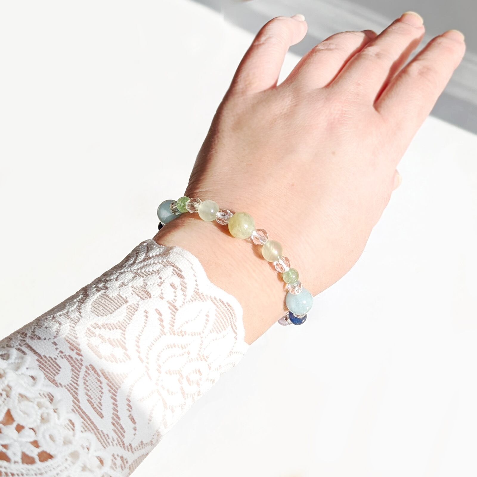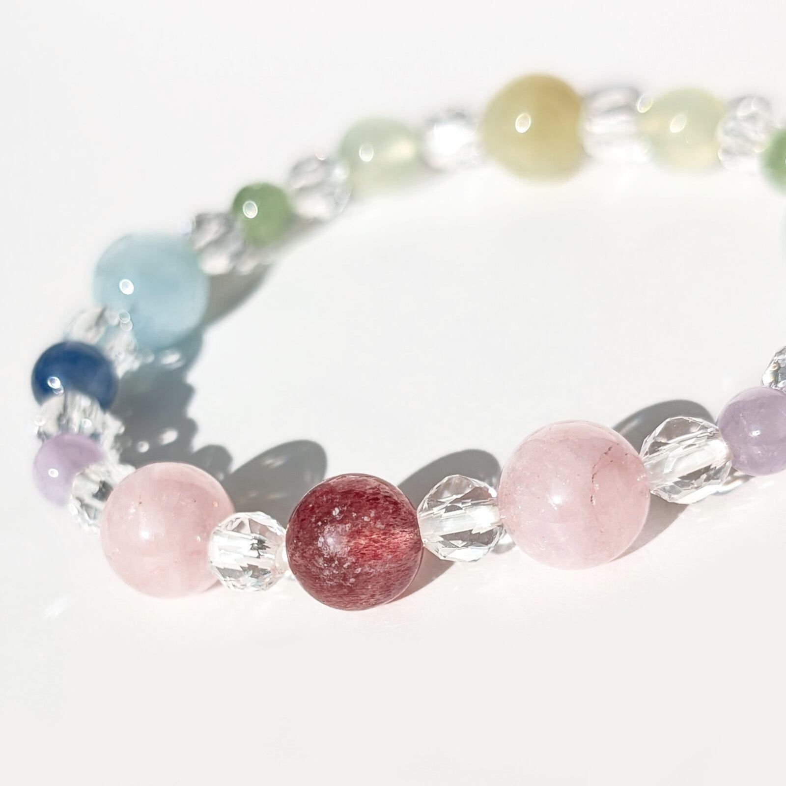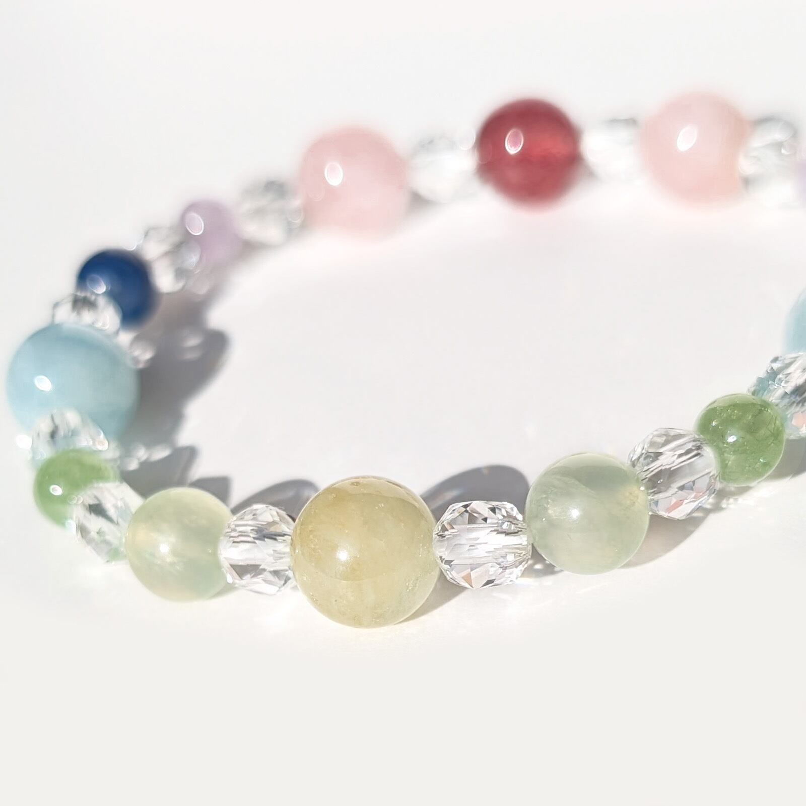 Rainbow/一点もの 虹色 レインボーグラデーション天然石×水晶ブレスレット