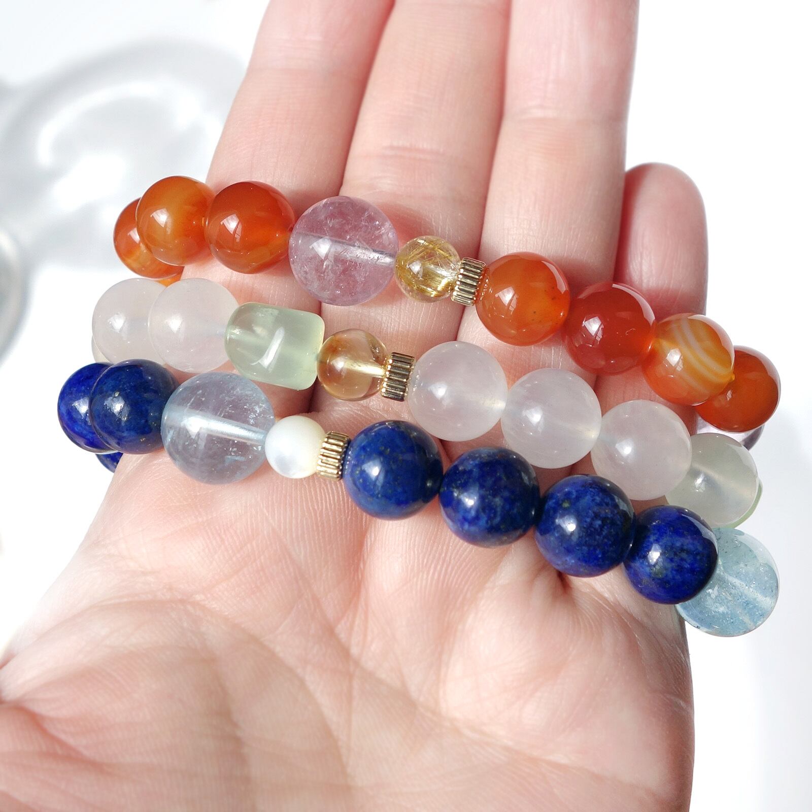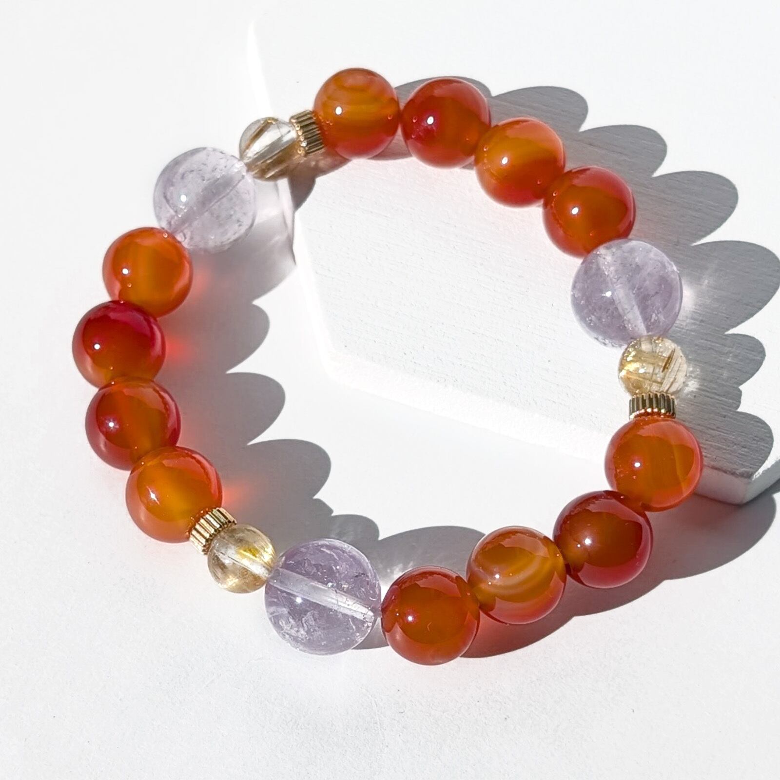 Grace/一点もの カーネリアン×アメジスト×ゴールドルチルクォーツ×14kgf グレイスブレスレット