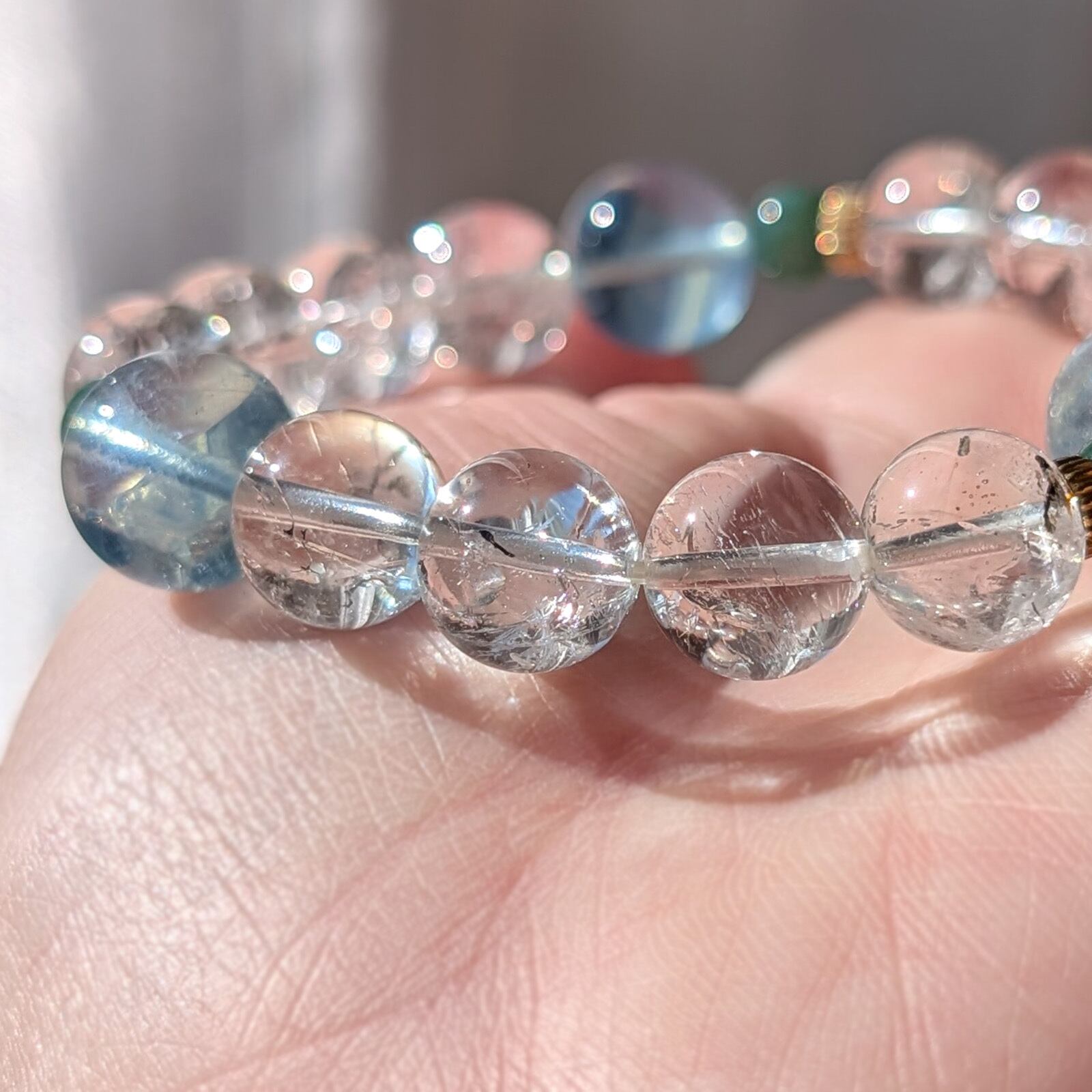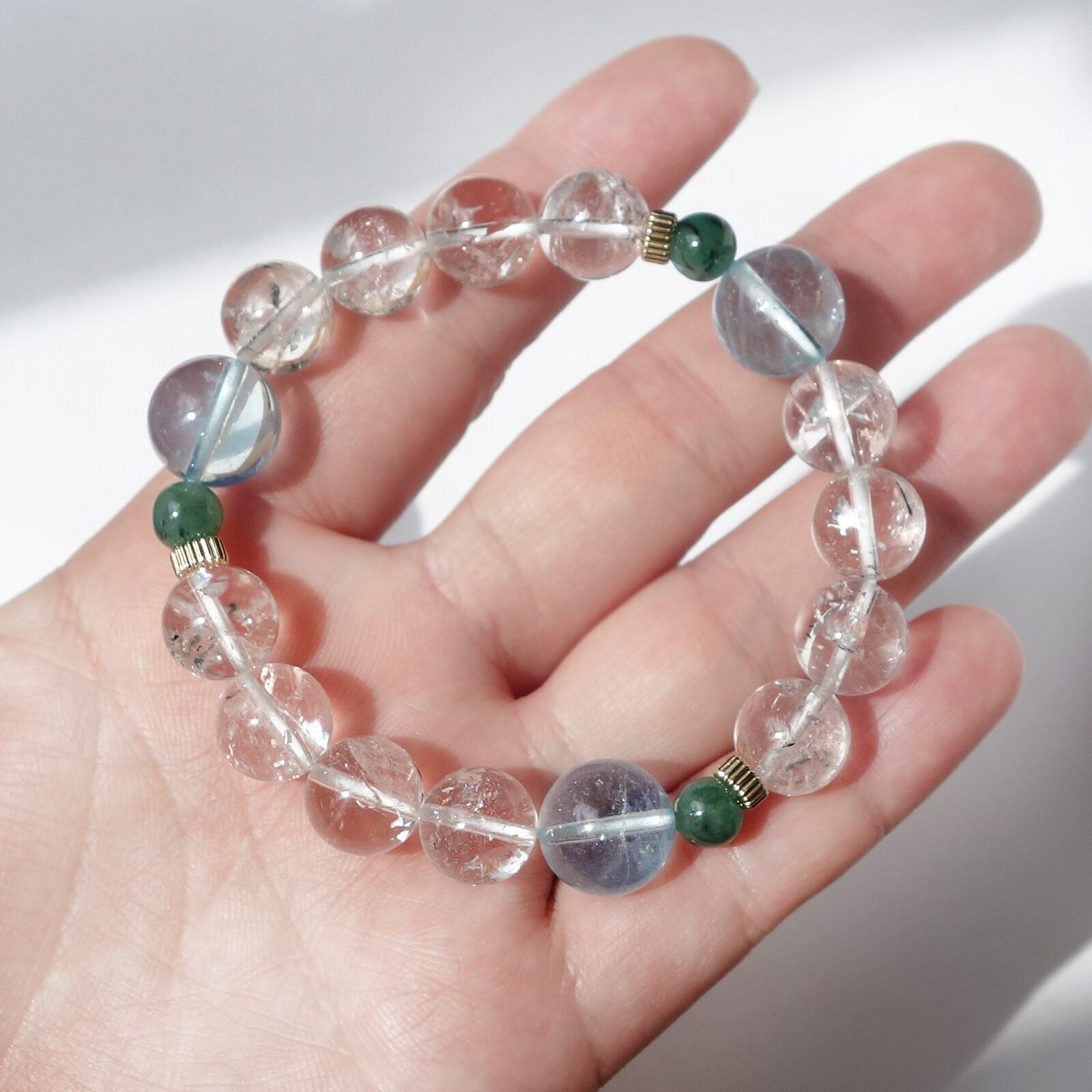 Grace/一点もの エレスチャルクォーツ×アクアマリン×エメラルド×14kgf グレイスブレスレット