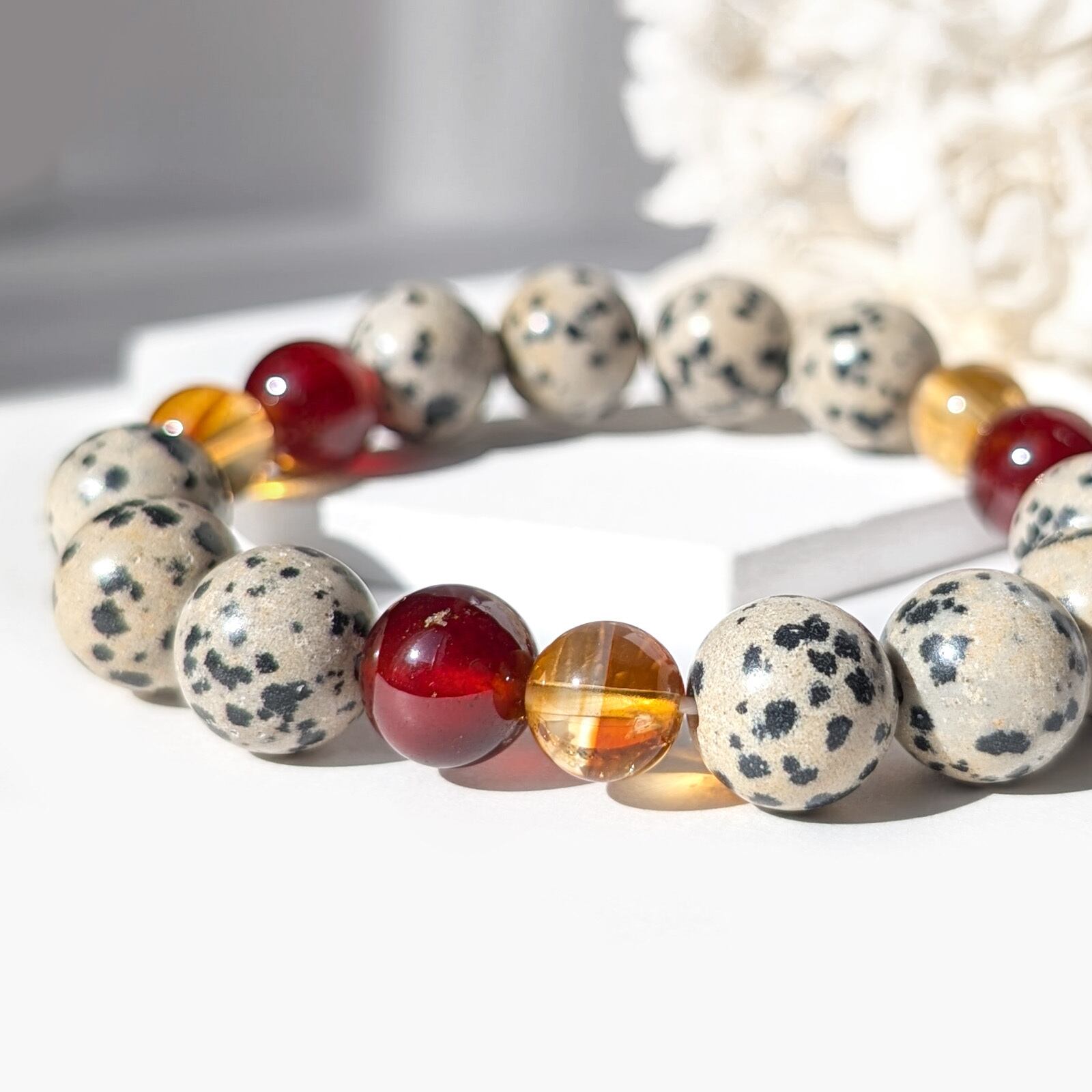 Grace/一点もの 大粒ダルメシアンジャスパー×ファントムシトリン×ヘソナイトガーネット グレイスブレスレット