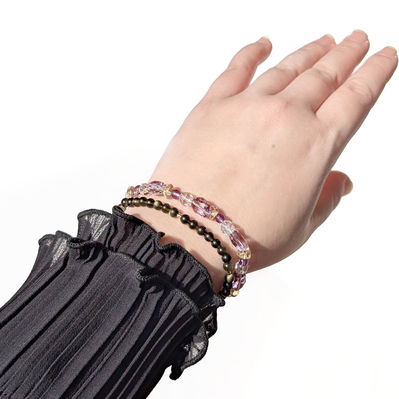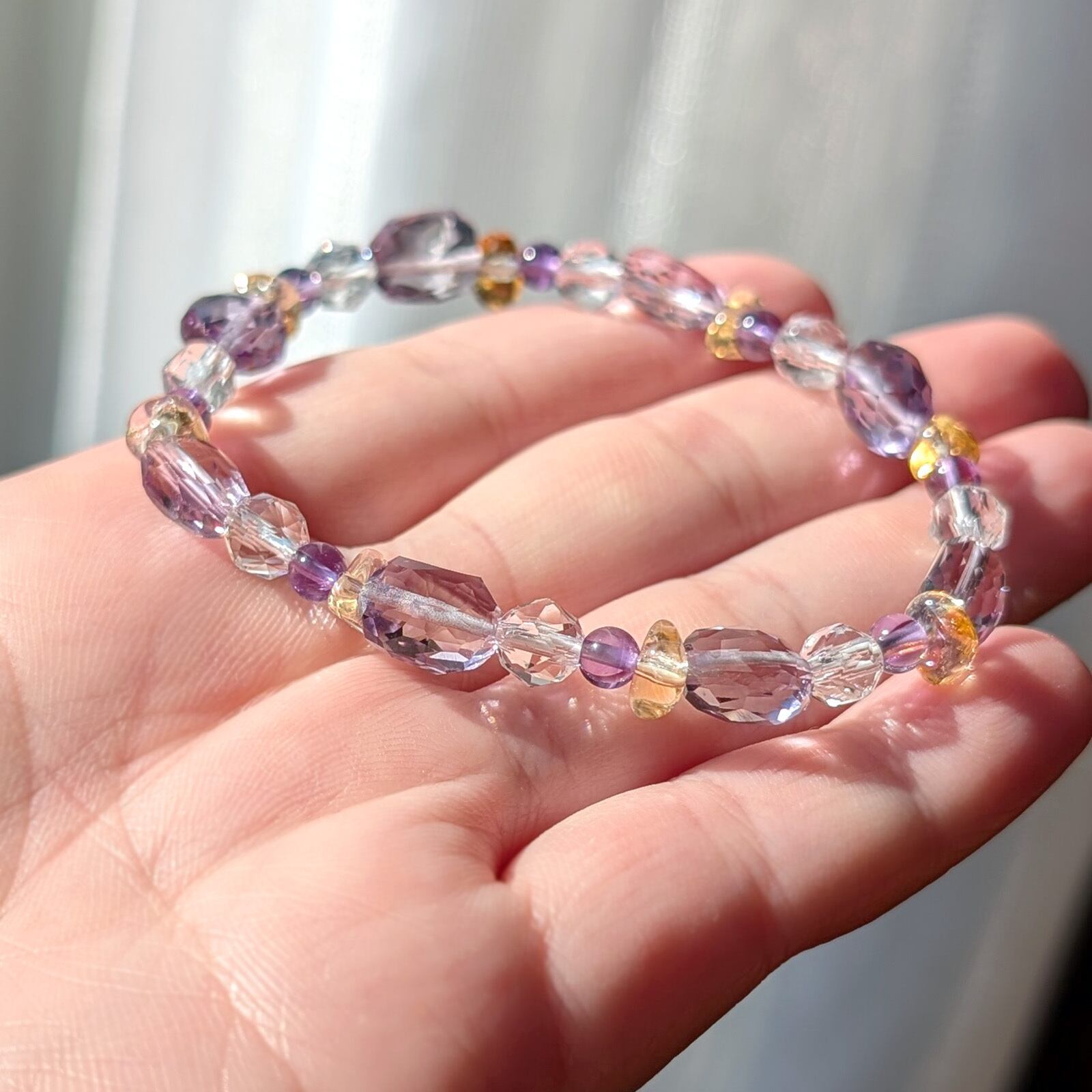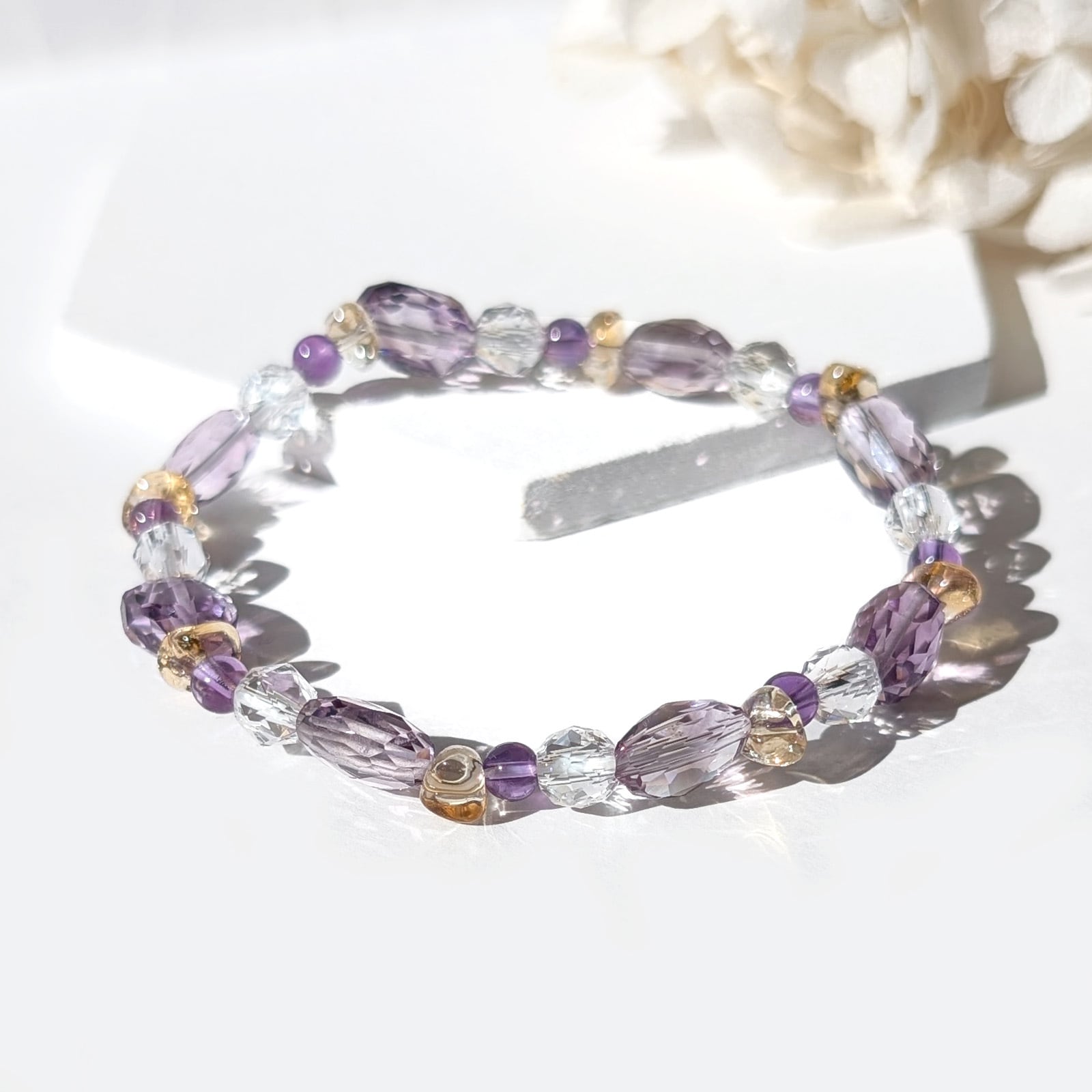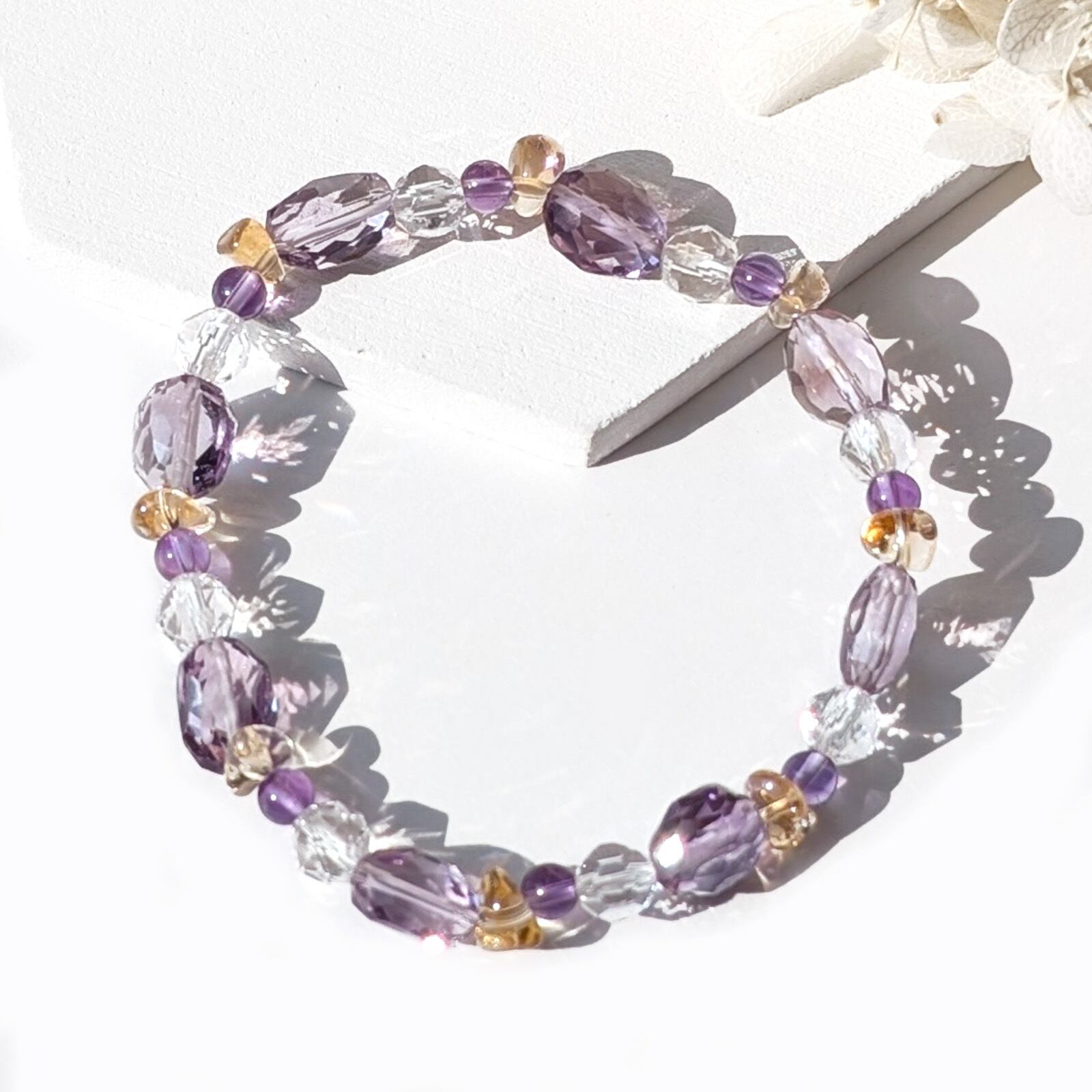 Hanakanmuri mini/一点もの アメジスト×シトリン×水晶 花かんむりブレスレット