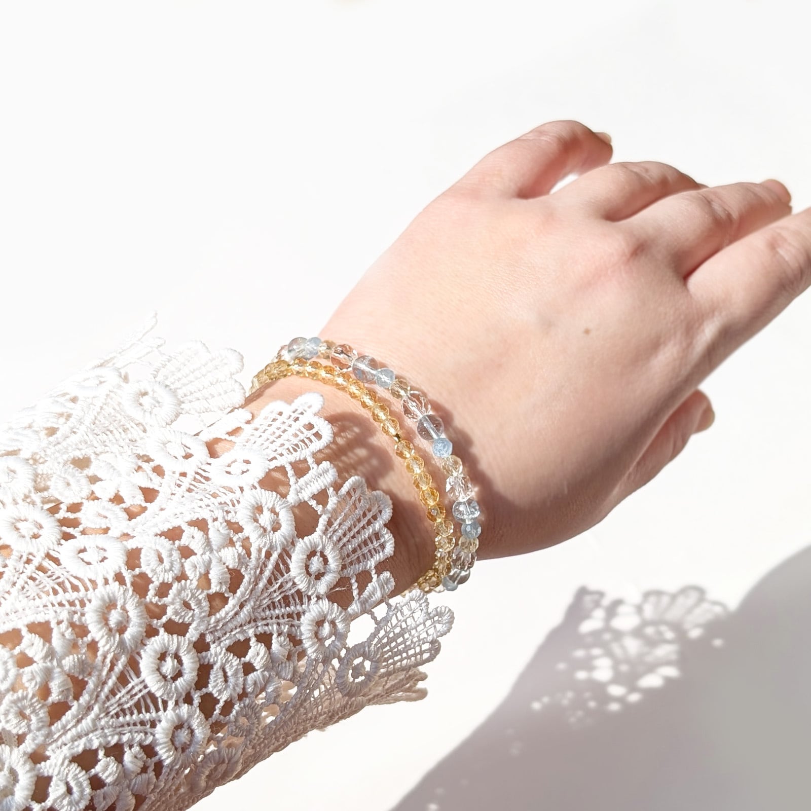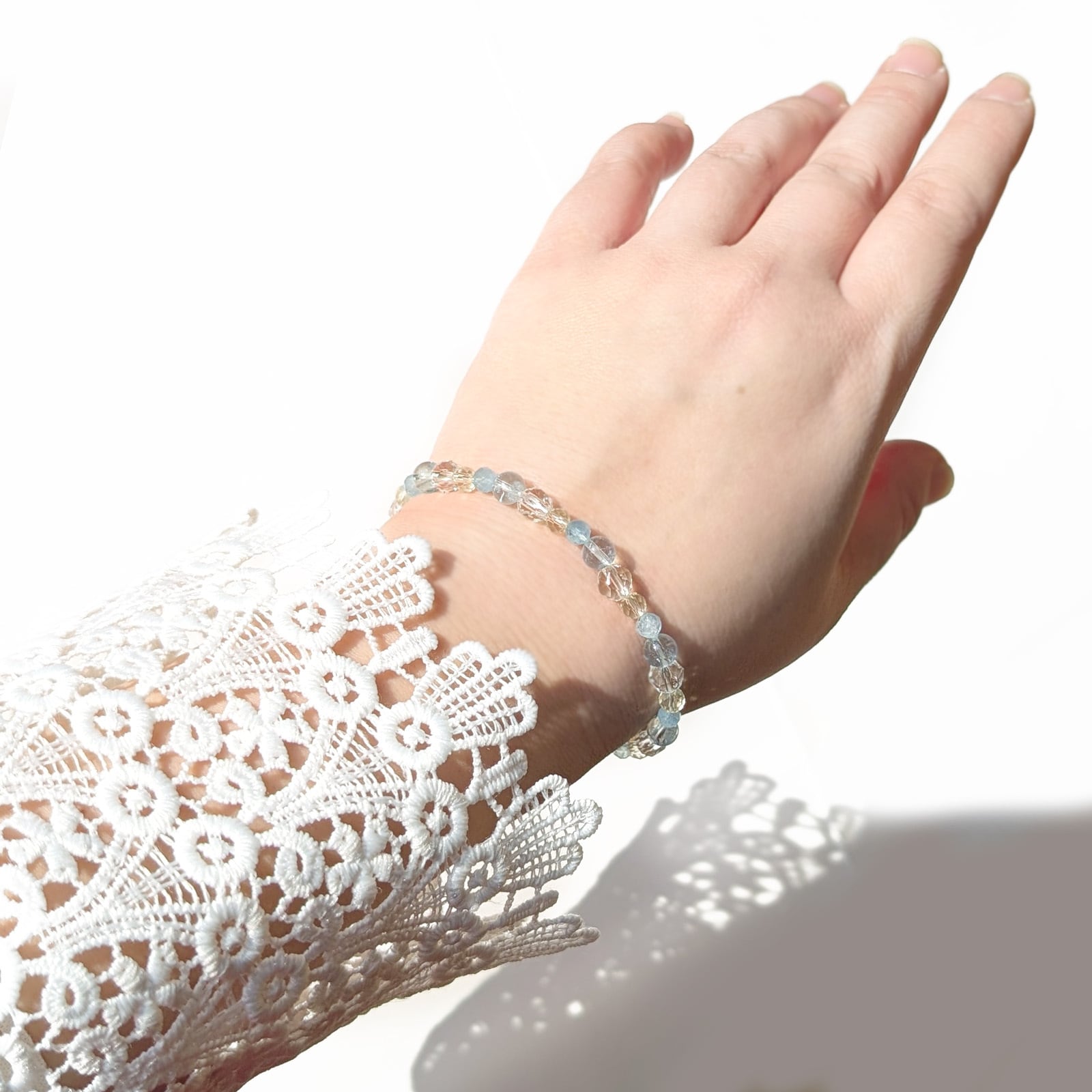Hanakanmuri mini/一点もの アクアマリン×レモンクォーツ×水晶 花かんむりブレスレット