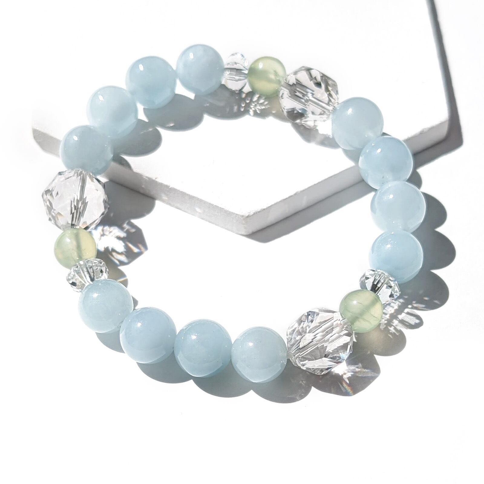 Grace/一点もの ミルキーアクアマリン×水晶×プレナイト グレイスブレスレット