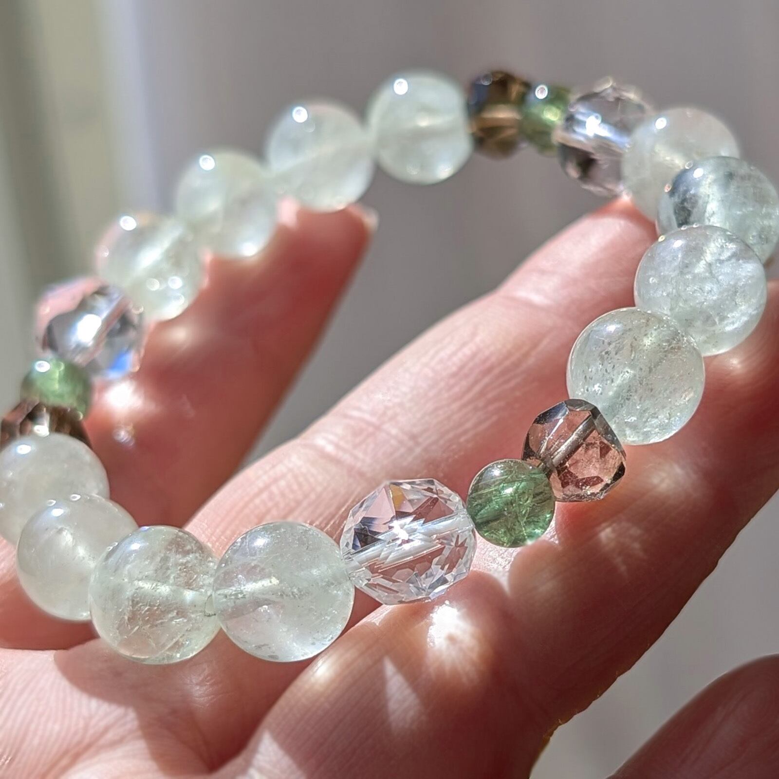 Grace/一点もの グリーンベリル×グリーンアパタイト×スモーキークォーツ グレイスブレスレット
